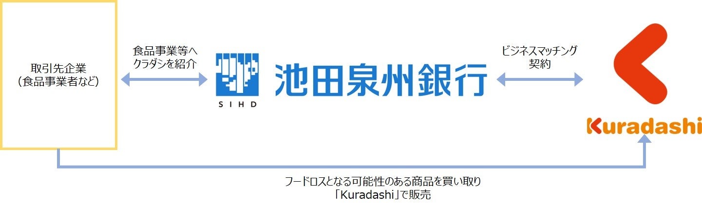 ソーシャルグッドマーケット「Kuradashi」を運営する株式会社クラダシ(本社:東京都品川区、代表取締役社長:関藤竜也、以下「クラダシ」)は、株式会社池田泉州銀行(本店:大阪府大阪市、代表取締役頭取兼CEO:鵜川淳、以下「池田泉州銀行」)とビジネスマッチング契約を締結し、関西エリアのさらなるフードロス削減を目指します。クラダシとして、関西エリアの金融機関との業務提携は池田泉州銀行が初めてです。