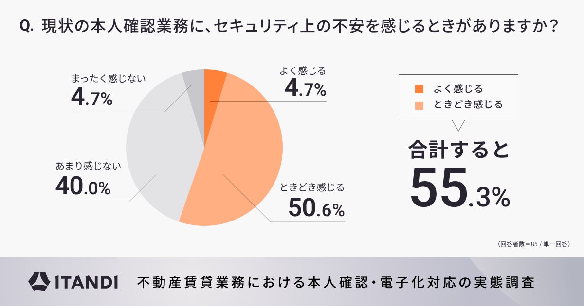 ・半数以上となる55.3%が本人確認業務でセキュリティ上の不安を感じている。