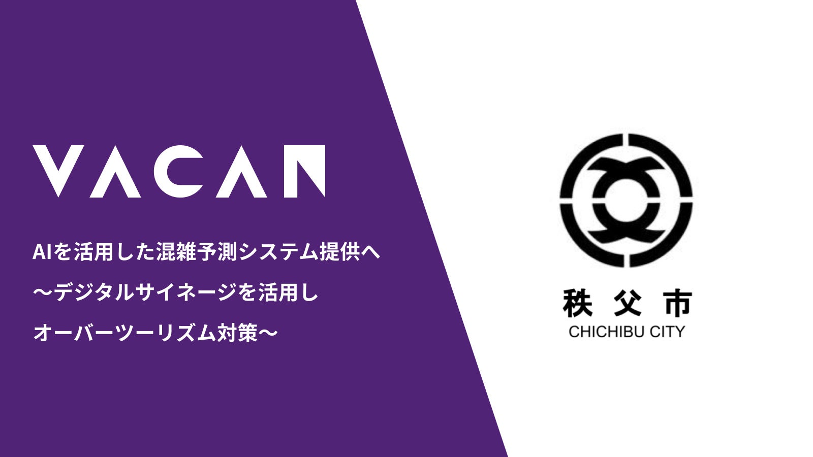 AI技術で混雑状況を可視化し、ムダな「待つ」をなくすサービスを提供する株式会社バカン(本社:東京都千代田区、代表取締役:河野剛進、以下「バカン」)は、埼玉県秩父市と連携し、市営三峰駐車場における混雑予測システムの本格運用と、市内の道の駅2か所でのタッチ式デジタルサイネージを活用したオーバーツーリズム対策への取り組みを2025年2月21日から開始いたします。なお、本取り組みは、観光庁「オーバーツーリズムの未然防止・抑制による持続可能な観光推進事業」の全国26地域のみが選定されている「先駆モデル地域型」の一環として実施しています。