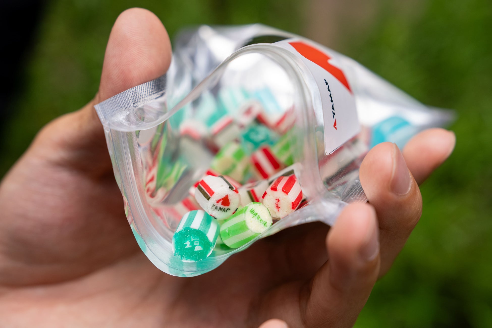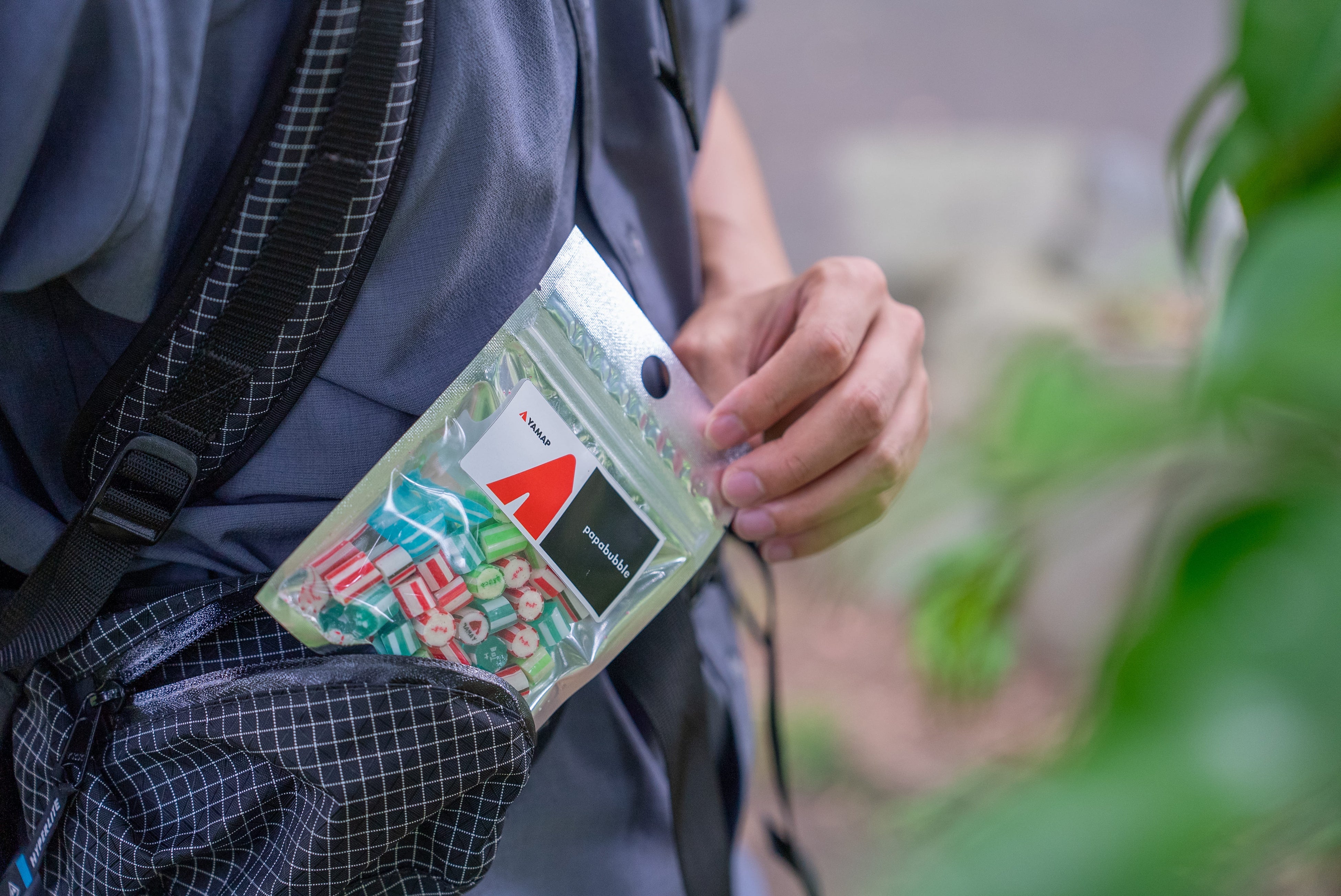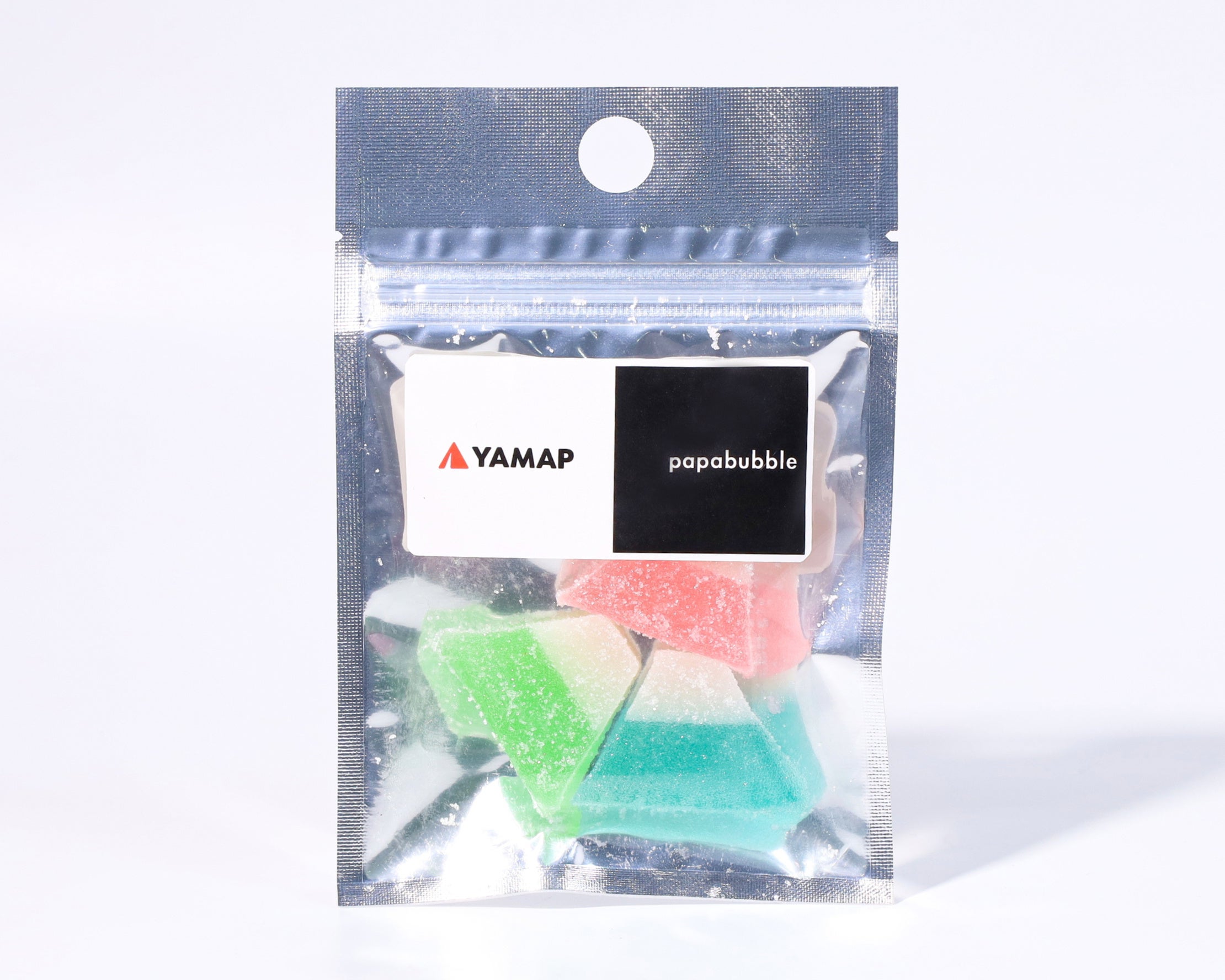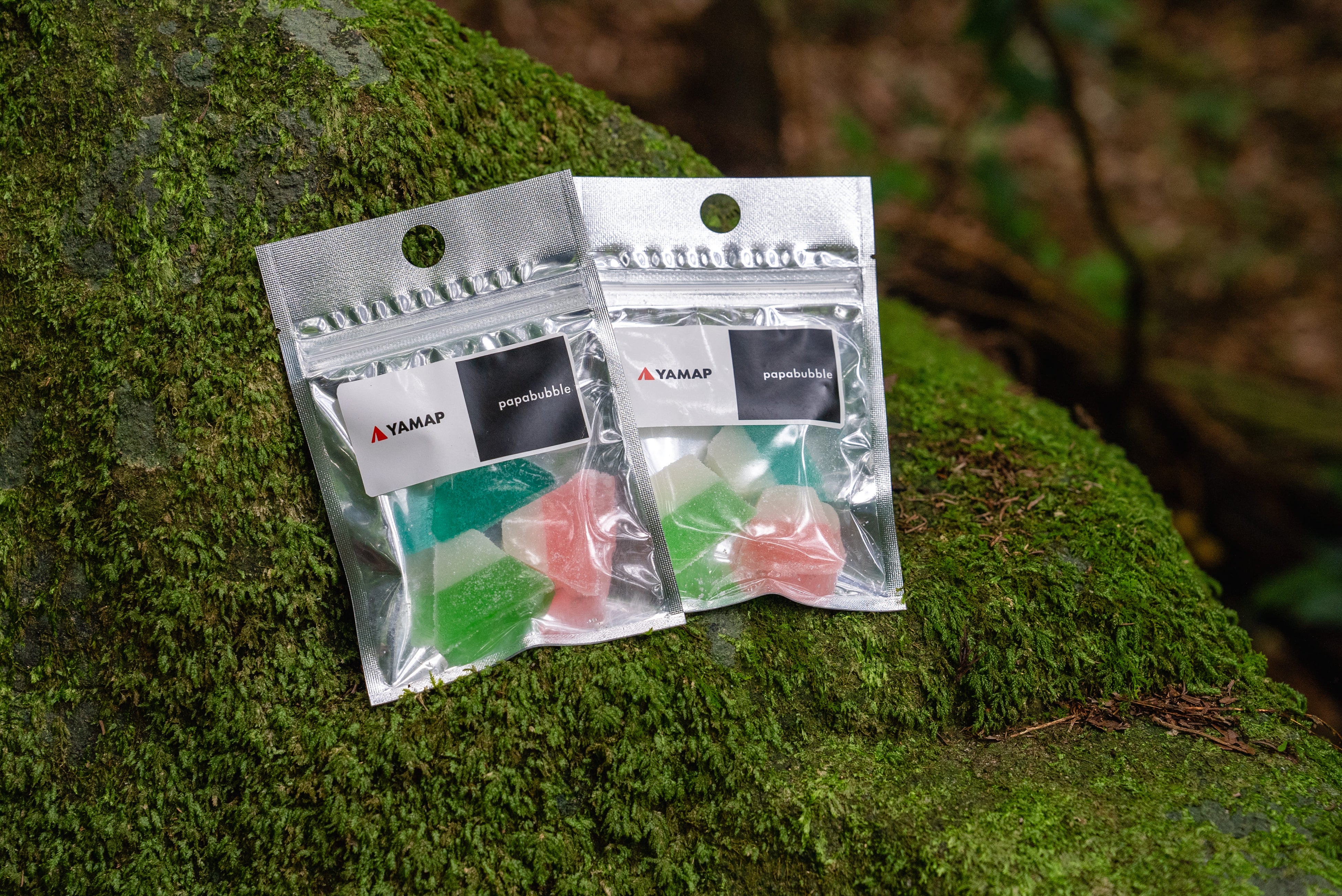 猛烈な暑さが続く夏。アウトドアシーンで不足しがちな塩分を、手軽に楽しく補給できる塩入りキャンディが誕生しました。ヤマップの合言葉「おつかれ山」や「ヤッホー」の文字など、一緒に山・自然を楽しむ仲間と楽しみたくなるカラフルなデザインに仕上げました。枕型のキャンディには粒塩を入れ、美味しいフルーツとの掛け合わせにこだわっています。