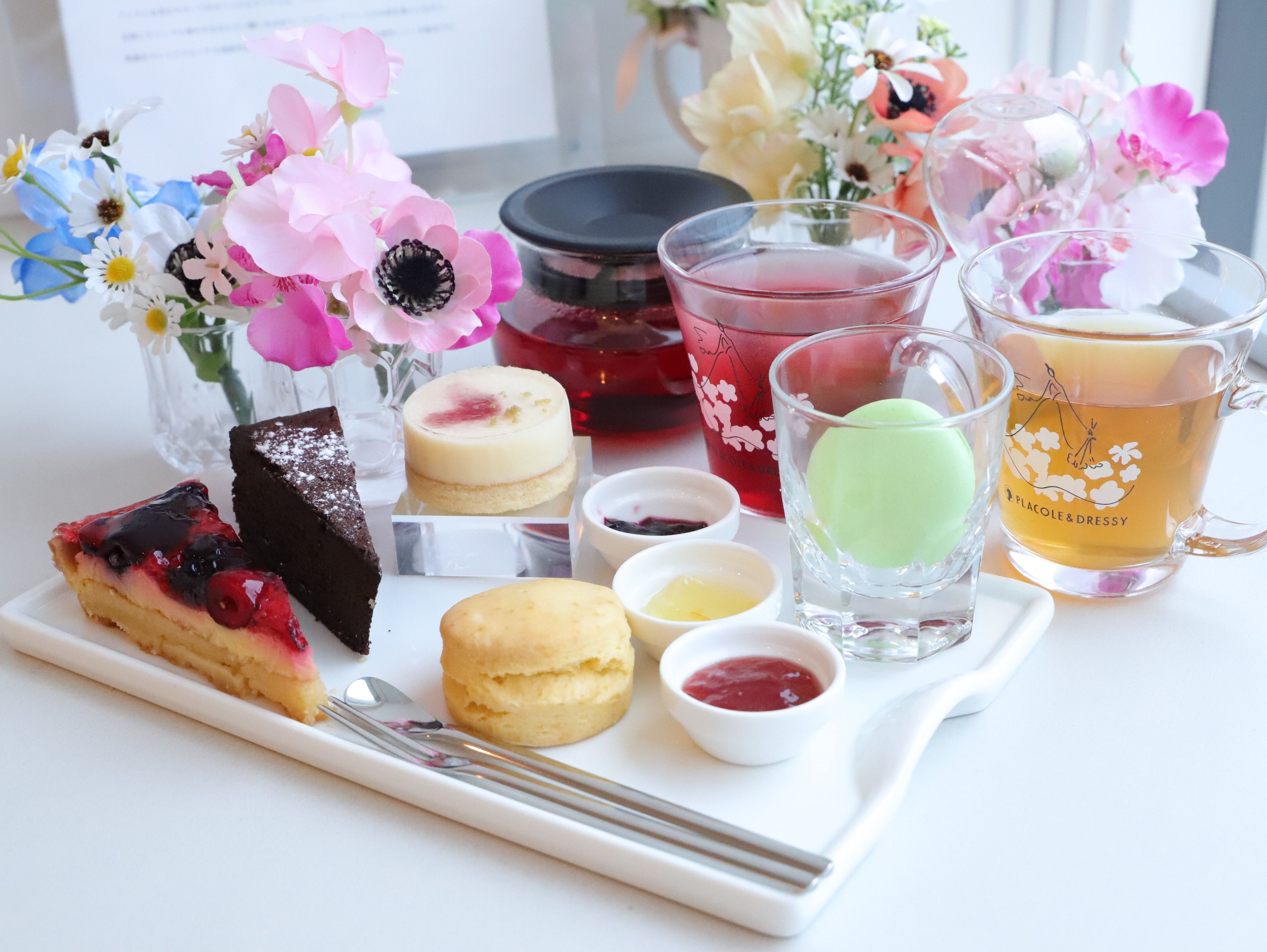 お花とドレスと紅茶のカフェ「DRESSY ROOM&Tea」の人気商品「オリジナルティー」「オリジナルマカロン」