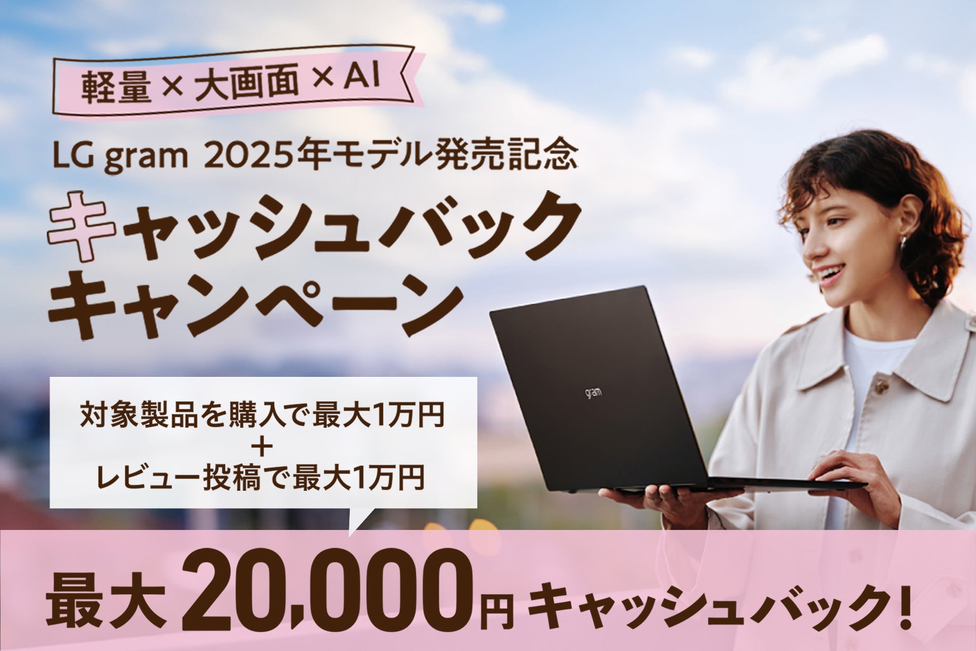 『LG gram 2025年モデル発売記念キャッシュバックキャンペーン』対象モデル追加で、最大2万円キャッシュバック!
