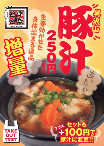 10月2日から販売開始となる宇奈ととの冬季限定メニュー「豚汁」もご一緒にどうぞ!