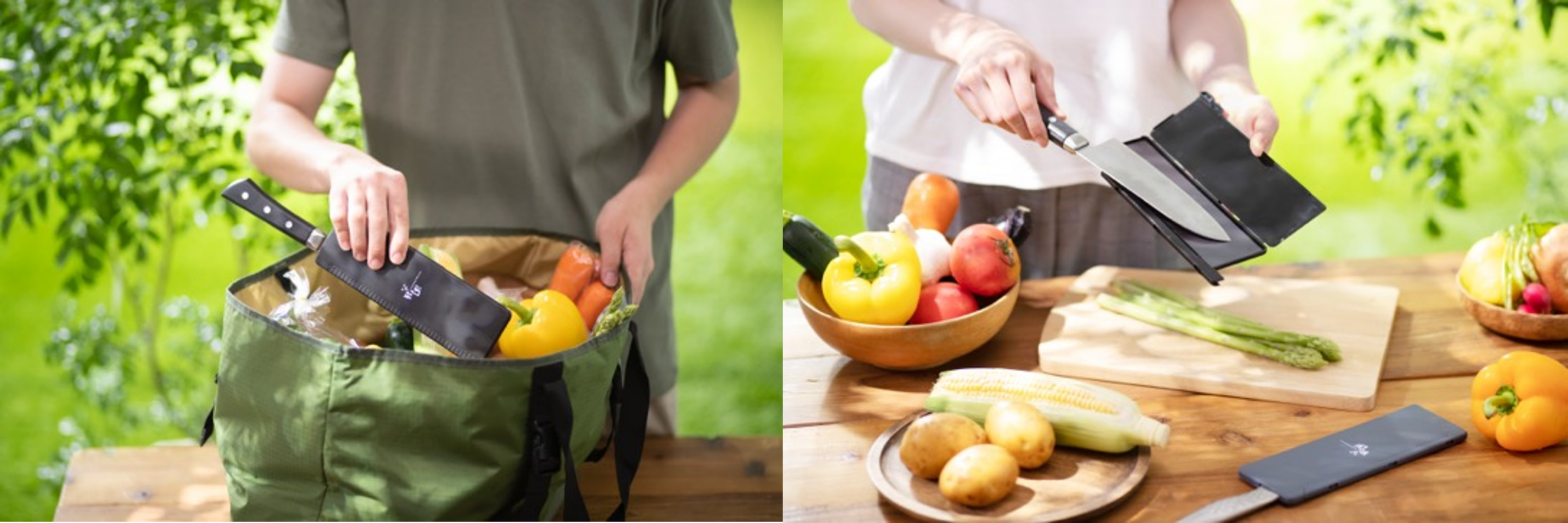 お気に入りの包丁をアウトドアでも!ロック機能で安全な持ち運びを叶える 国内家庭用包丁シェアNo.1※「関孫六」ブランドよりブレードガードが2カラーで新登場!