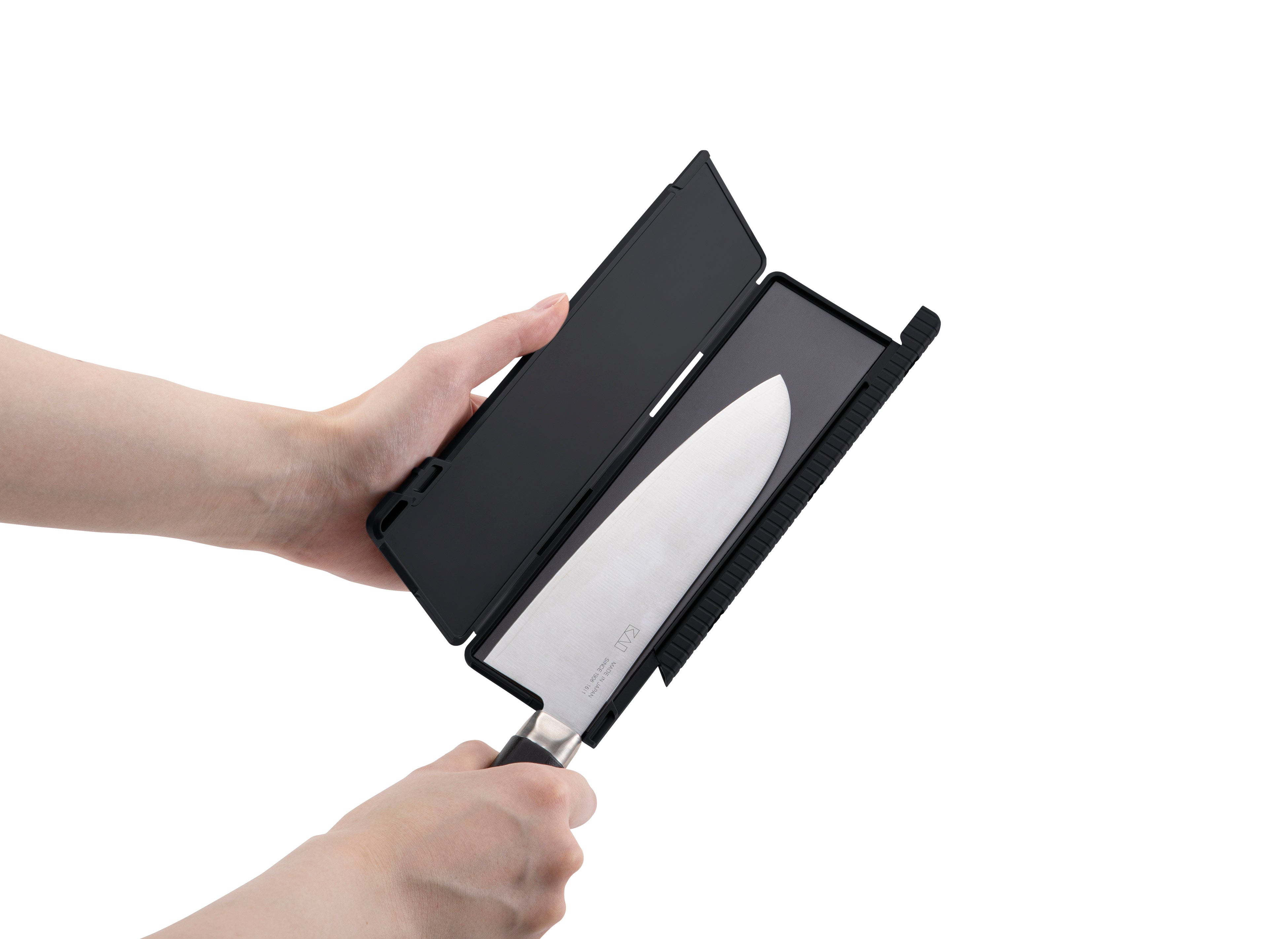 安全に持ち運べる包丁関連製品の需要が高まった背景を受け、お手持ちの包丁の持ち運びを可能にするマグネットタイプのブレードガードを黒とグレーの2色展開で新発売いたします。ブレードガードを用いることで、手に馴染んだお手持ちの包丁を安全に持ち運びできるようになり、アウトドアやお料理教室などの外出先でも使用できます。