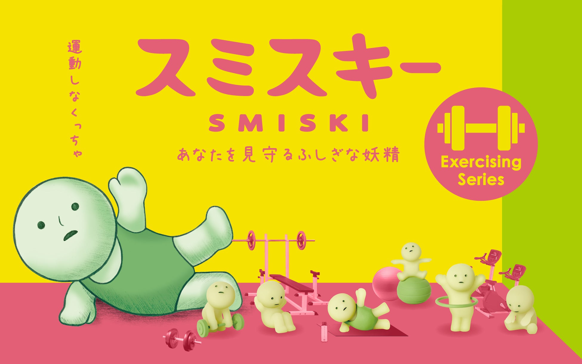 SNSを中心に人気急上昇中の、スミが好きな、あなたを見守る妖精「スミスキー」より待望の新シリーズ『SMISKI Exercising Series(スミスキー エクササイジングシリーズ)』が登場。新シリーズでは、丸みを帯びた体型を気にし始めたのか、部屋のスミでエクササイズをしているスミスキーが新たに発見されました。