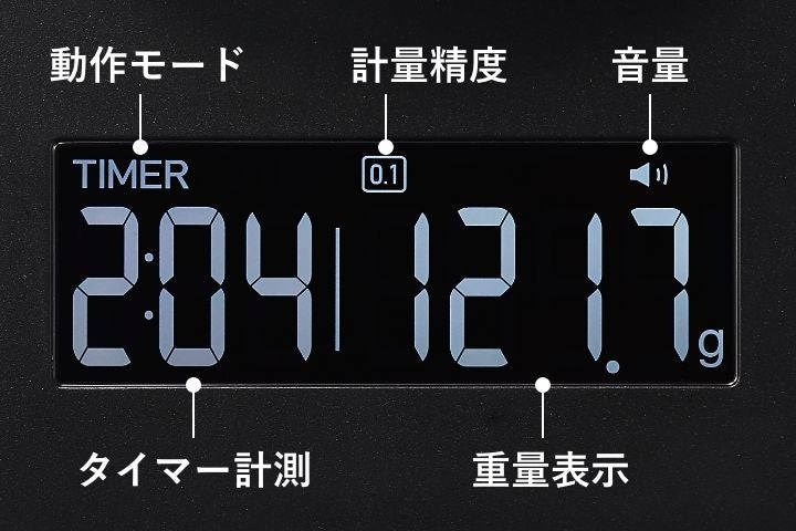 1g単位で湯量を正確に計量し、自動で抽出時間を計測できるTIMER AUTOモード