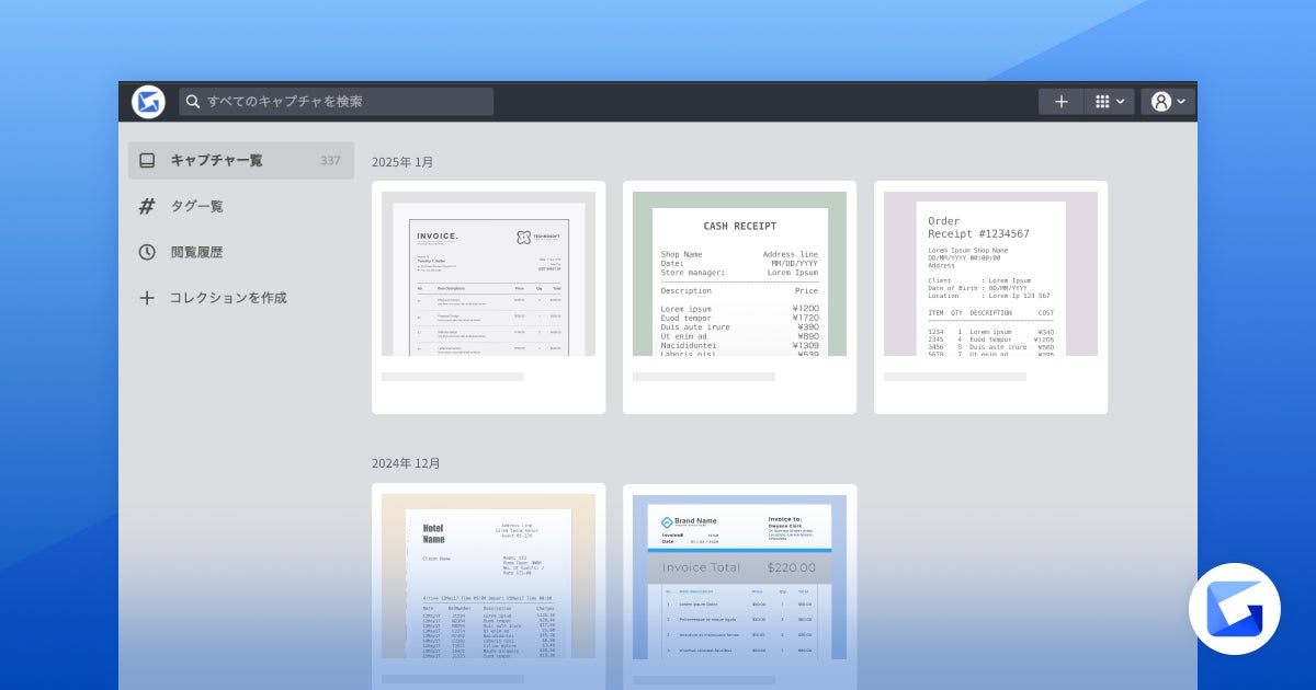 OCRスキャンで画像内のテキストを検索できるため(※3)、キャプチャした画像群から閲覧したい画像を簡単に抽出することが可能です。