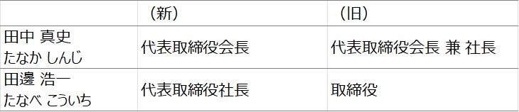 ※なお、田中はバルテス・ホールディングス株式会社の代表取締役会長 兼 社長およびバルテス株式会社の代表取締役会長として、経営全般に引き続き関与してまいります。