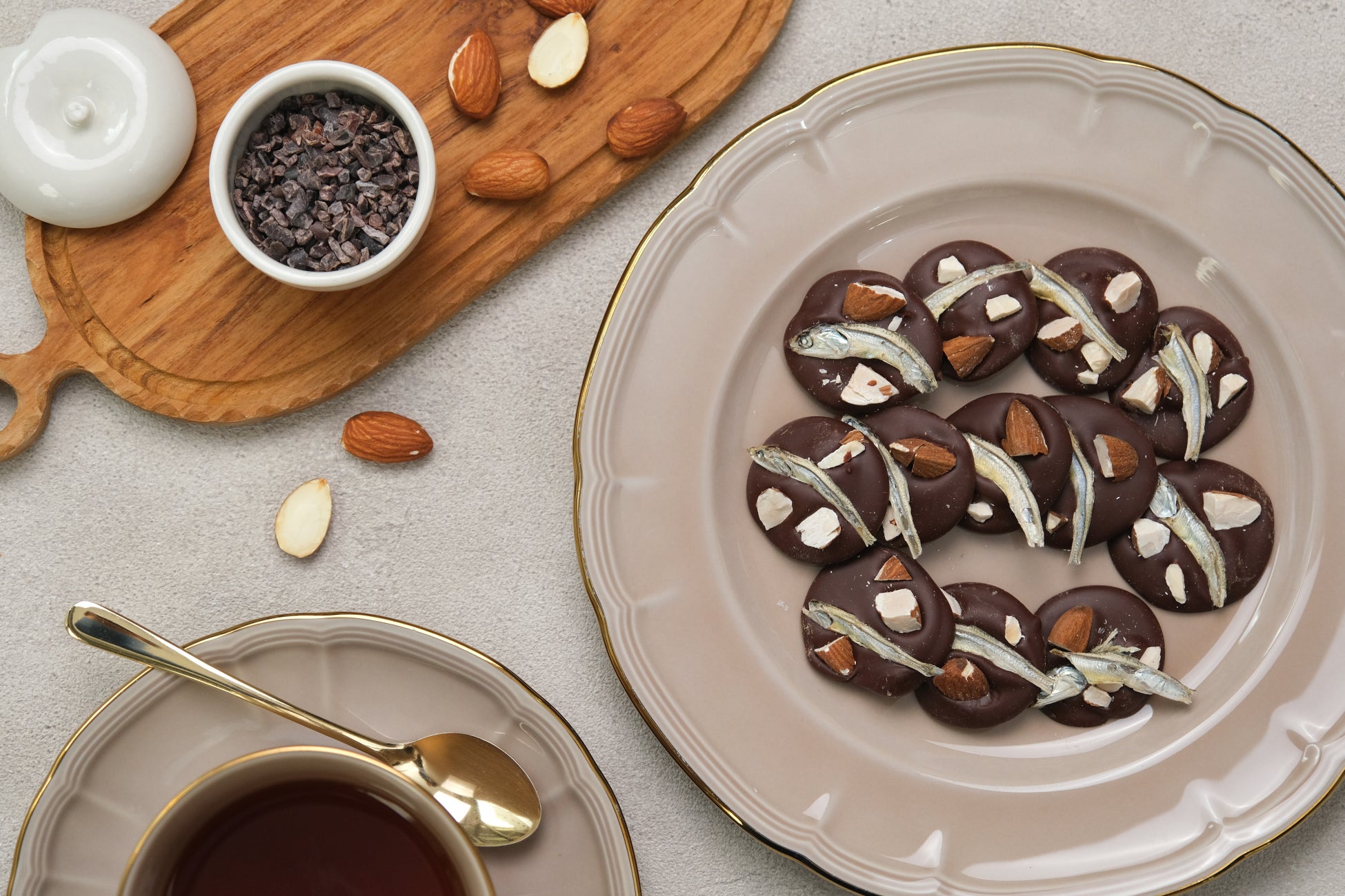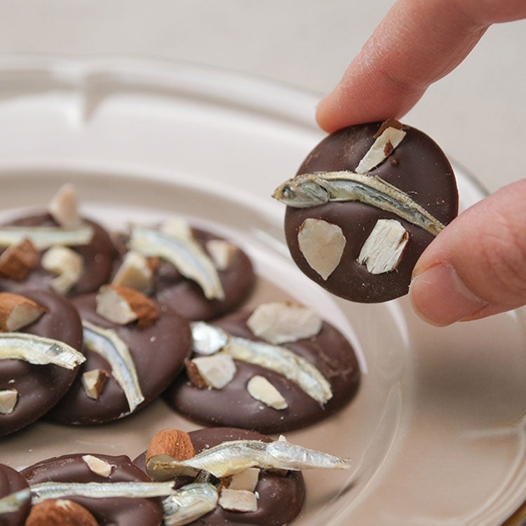 カカオ72%の深みと煮干しの旨みが調和する、新感覚ショコラ