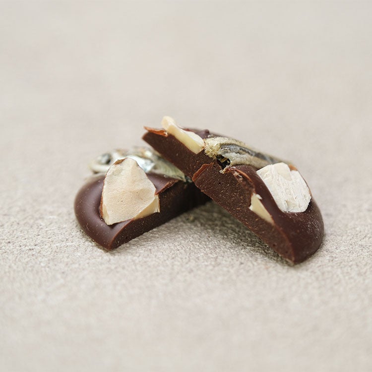 ベトナム産カカオ72%のビターチョコレートに、煮干しをまるごと合わせた一品。