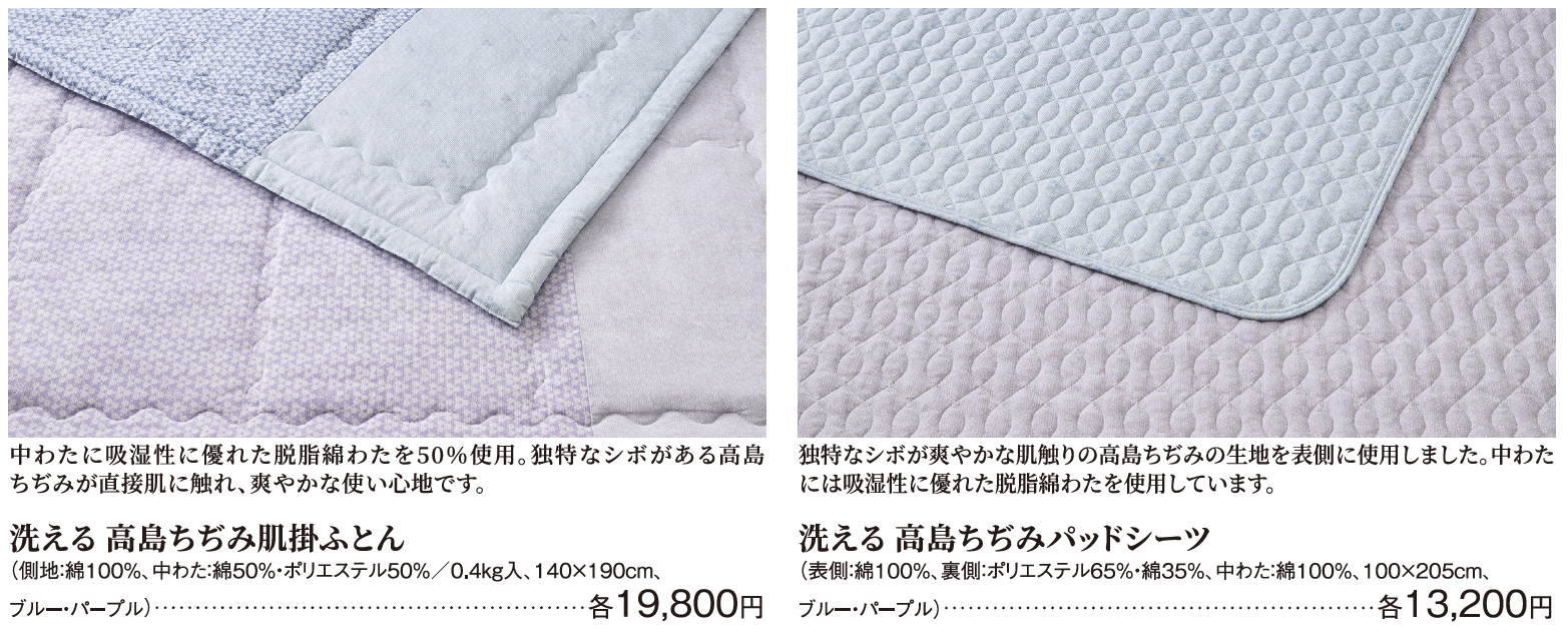 フェア期間中、対象店舗にてタカシマヤデビットカード、タカシマヤのクレジットカード、または友の会「お買物カード」をご利用のうえ「昭和西川」麻寝具および洗える高島ちぢみの寝具をお買上げのお客様には、15%OFFのご優待価格にてお求めいただけます。