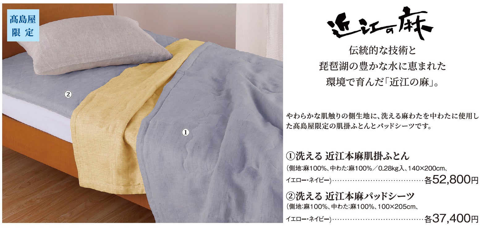 ~髙島屋限定「近江の麻」寝具など天然素材アイテムを展開~