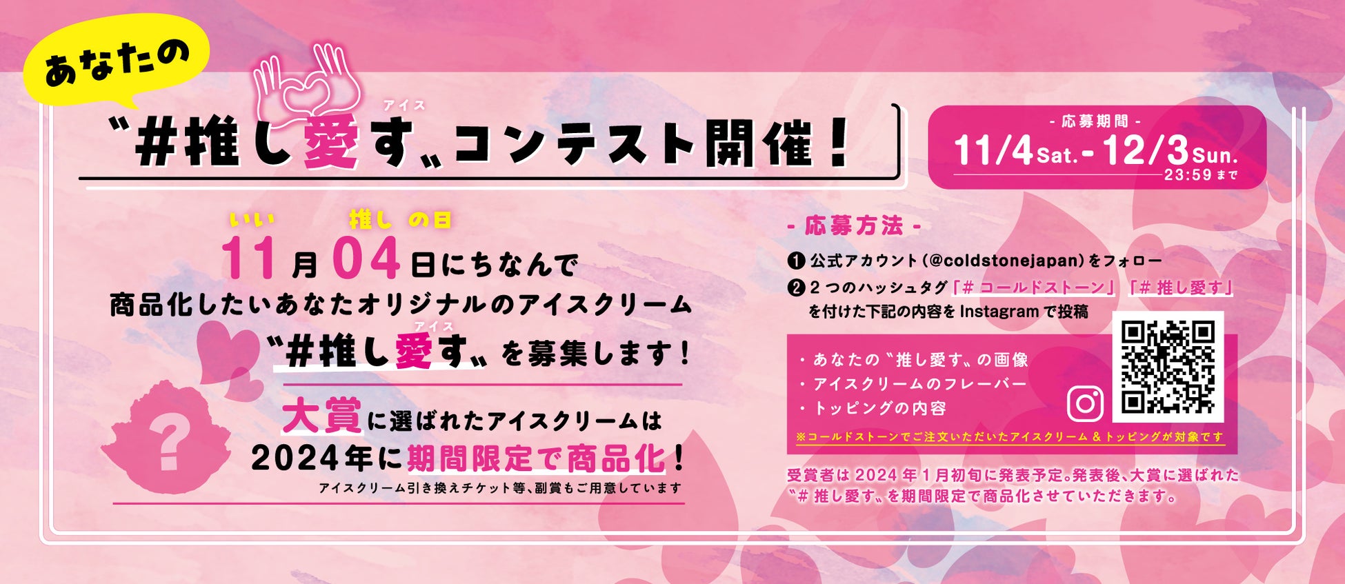 11月04日(1104 = いい推し の日)より、#推し愛す(アイス)コンテストも開催!大賞に選ばれたアイスクリームは2024年に商品化!!