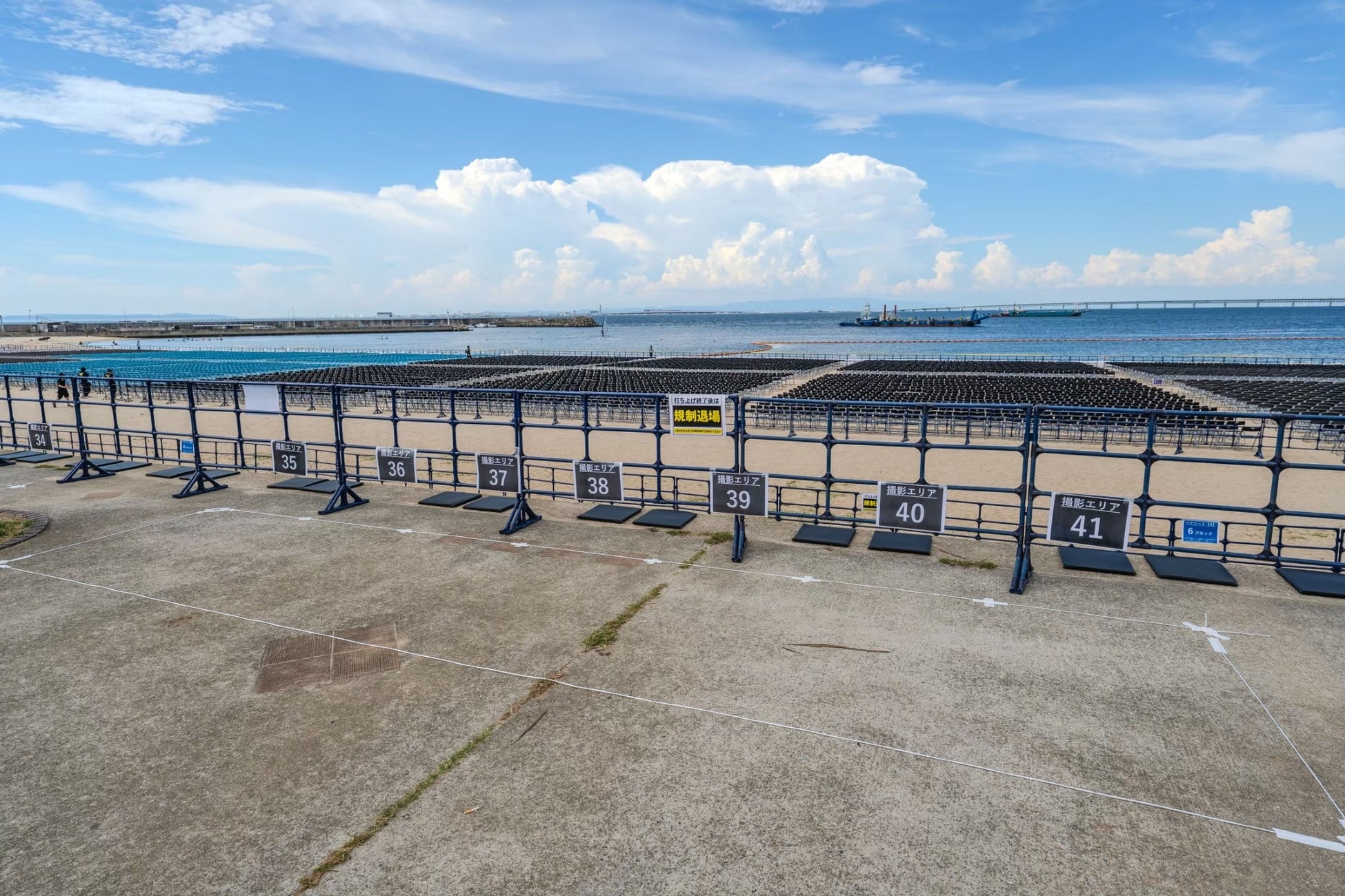 泉州夢花火は有料エリアからのみ最高の視聴覚体験が可能な演出となっており、花火の美しさと迫力を最大限にお楽しみいただけます。安全運営を実現すべく、側面や後方からのご観覧は制限いたしますので予めご了承ください。ご入場いただく皆様に、特別な場所で最高の花火ショーをお楽しみ頂けるよう全力で努めて参りますので、ご理解とご協力を賜りますようお願い申し上げます。