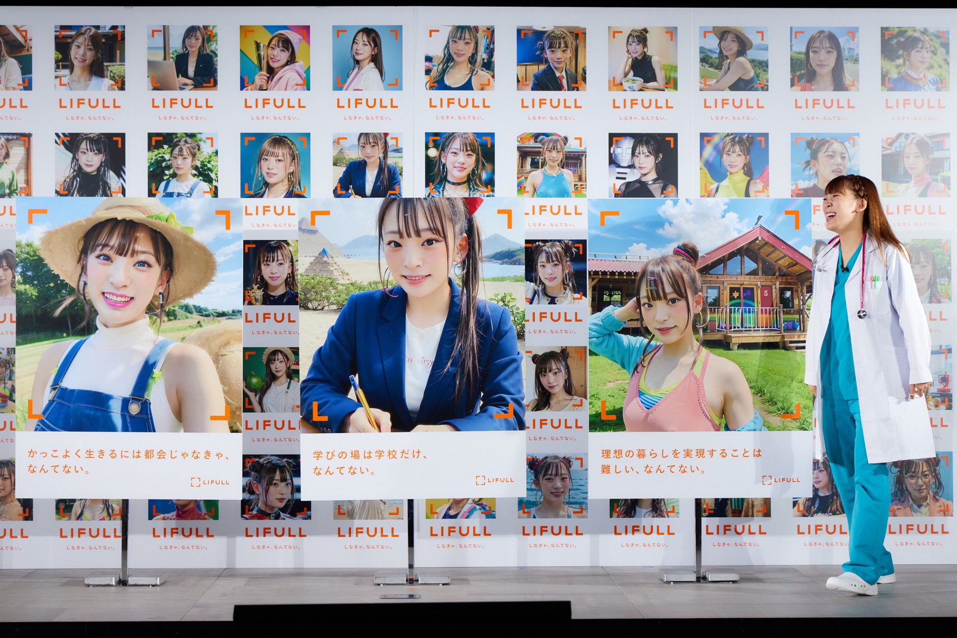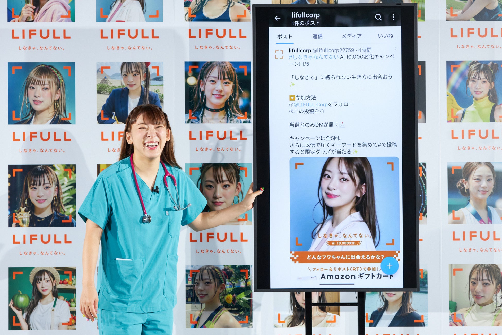 8月31日に行われた、本企画を発表するPRイベントでは、AIによる画像生成のモデルとなったタレント・フワちゃんが登壇。AIで生成した10,000種類の画像から、「キャリアには一貫性がなきゃ、なんてない。」を再現した医師の姿で登場すると「こういうイベントの時しか着れないから嬉しい!」とコメント。また、今回の企画で登場する「学びの場は学校だけ、なんてない。」に対しても共感している様子で、「私は場所だけじゃなくて、タクシー運転手さんからも『気の利く一言』を学んでる!」とエピソードも披露しました。SNS企画体験では「絶対に待ち受けにしたいし、みんなにもこの企画を通して自分じゃ予想もつかない生き方に出会ってみて欲しい!」と伝えました。