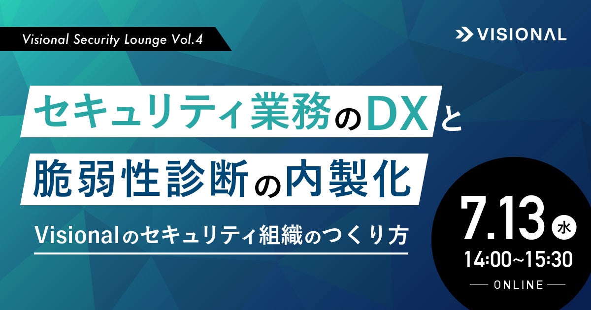 オンラインセミナー「セキュリティ業務のDXと脆弱性診断の内製化〜Visionalのセキュリティ組織のつくり方〜」を7/13に開催
