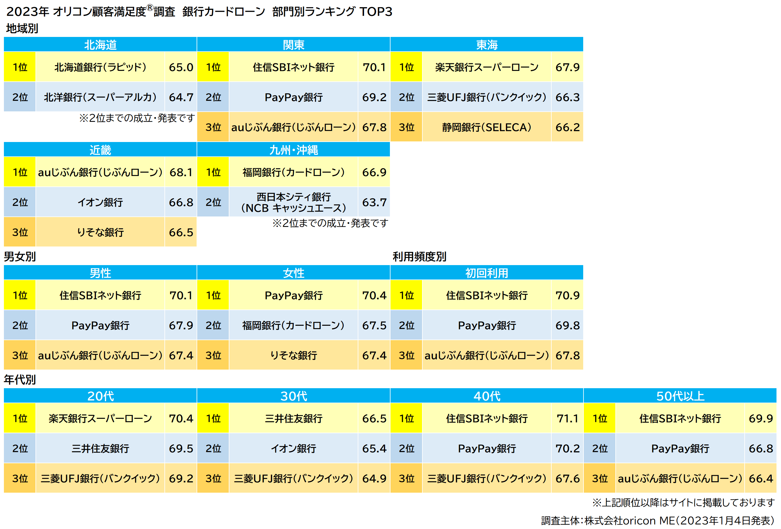 - 《調査概要》 2023年 オリコン顧客満足度®調査 銀行カードローン ランキング