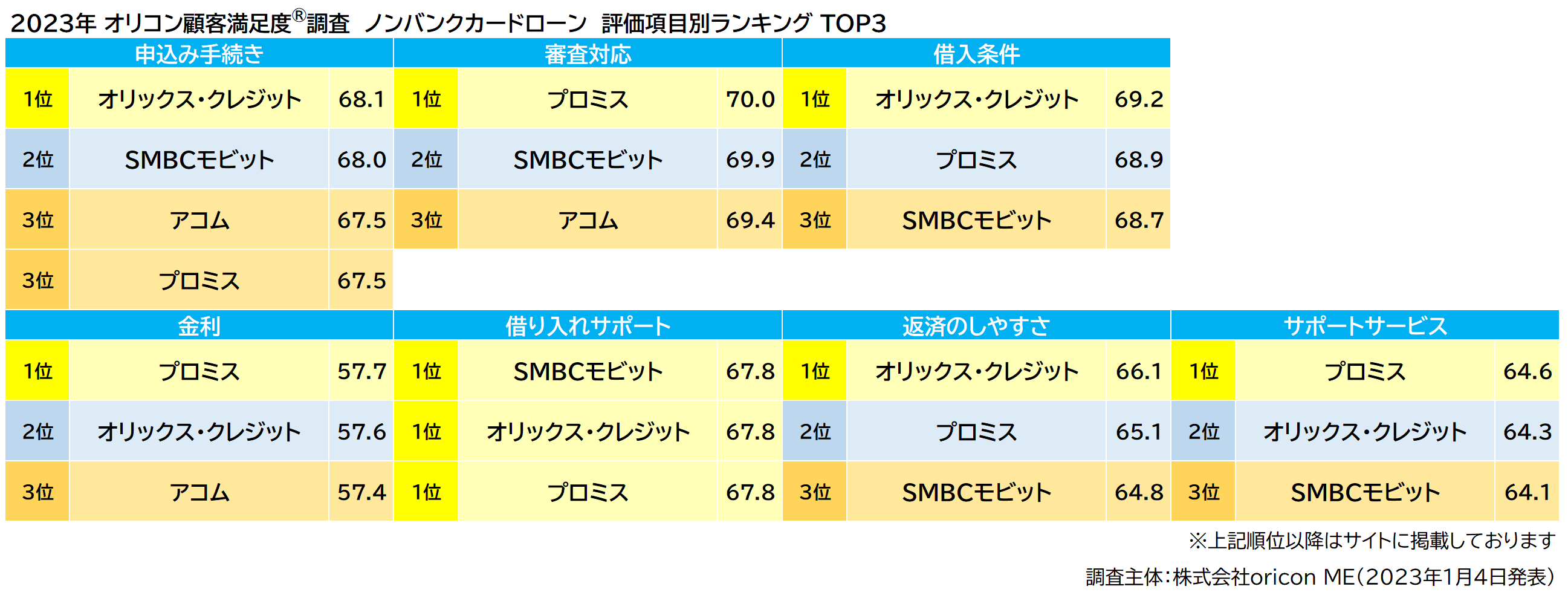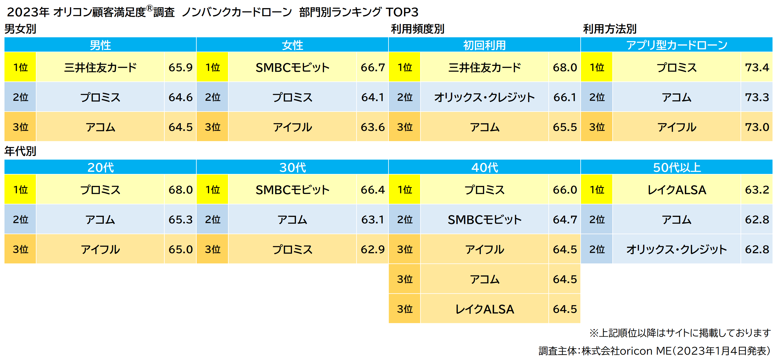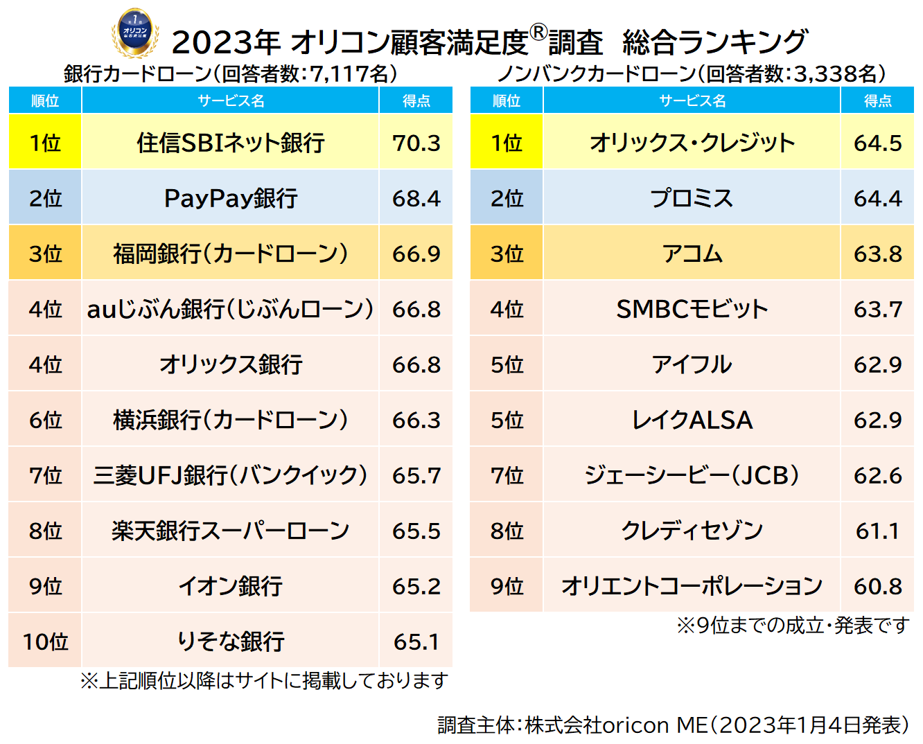 - 《調査概要》 2023年 オリコン顧客満足度®調査 ノンバンクカードローン ランキング