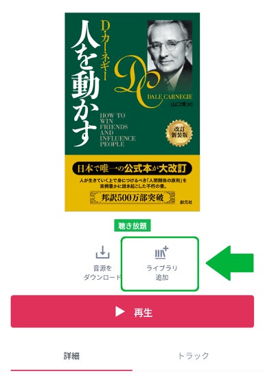 ダウンロードせずに再生する場合は自動でライブラリに追加されません。ライブラリに追加したい場合は「ライブラリ追加」をタップしてください。