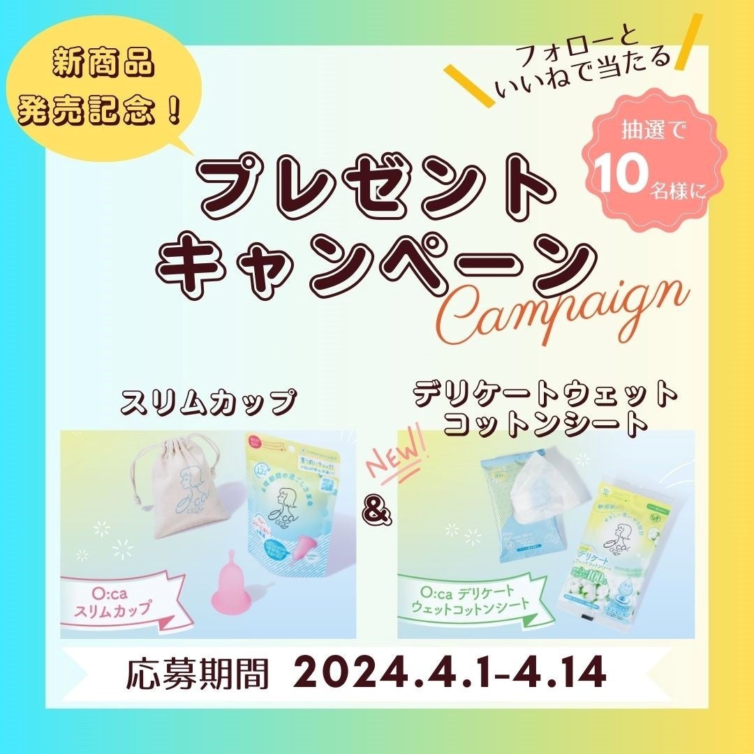 新商品発売を記念して、公式Instagramではプレゼントキャンペーンを実施中です。抽選で10名の方に新商品の「デリケートウェットコットンシート」と「スリムカップ」(※一般医療機器)をプレゼントいたします。詳しくは公式Instagramをご確認ください。