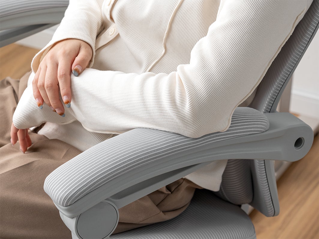 作業中はもちろん、リラックス姿勢でも肘をしっかり預けられ、快適な座り心地をサポートします。