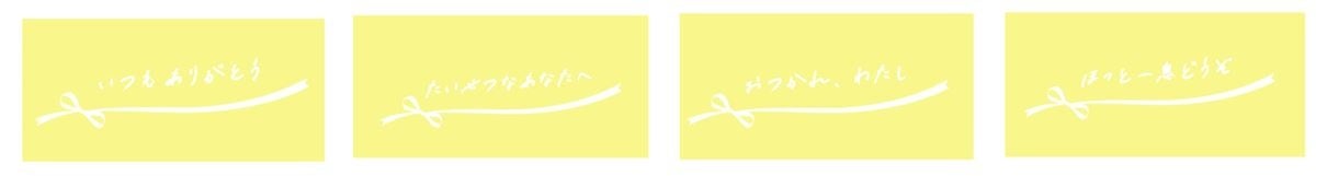 パッケージには、ミモザの花束のイラストが優しいタッチで描かれています。4色展開で、底面には「いつもありがとう」「たいせつなあなたへ」「おつかれ、わたし」「ほっと一息どうぞ」のメッセージが添えられています。キャンディを贈る人のイメージや、感謝の気持ちに合わせて選ぶことができます。