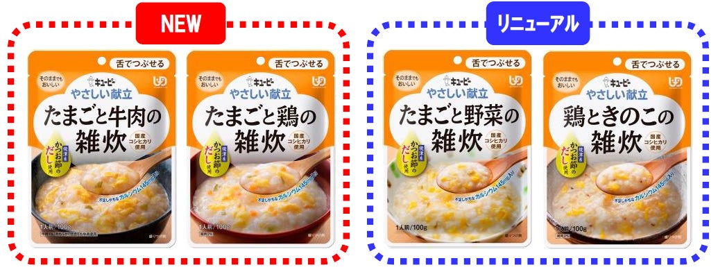 高まる“UDF”需要に対応しラインアップを拡充!キユーピー「やさしい献立」シリーズ “舌でつぶせる”区分からだしと素材にこだわった「たまごと牛肉の雑炊」「たまごと鶏の雑炊」の2品を新発売