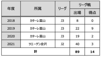 J2リーグ 40試合(3得点) / J3リーグ 49試合(11得点)
