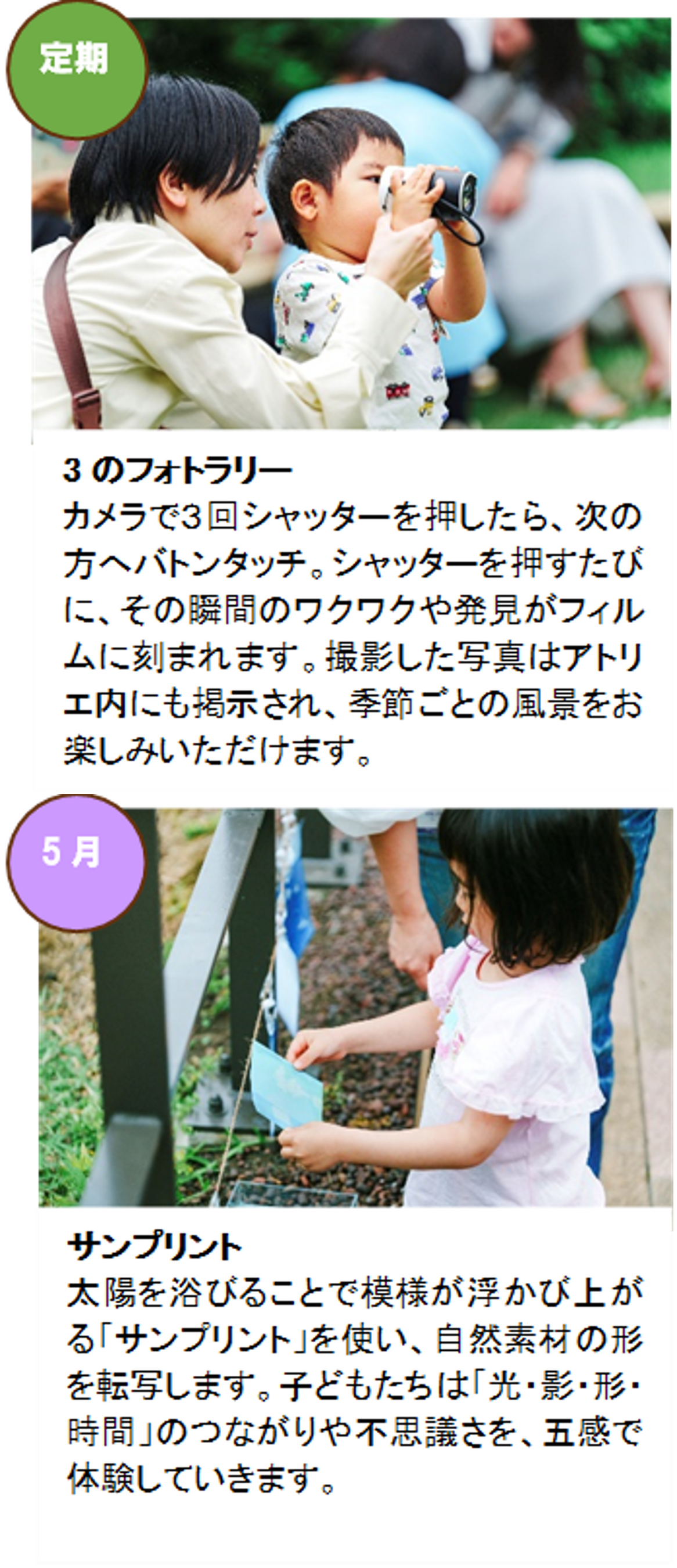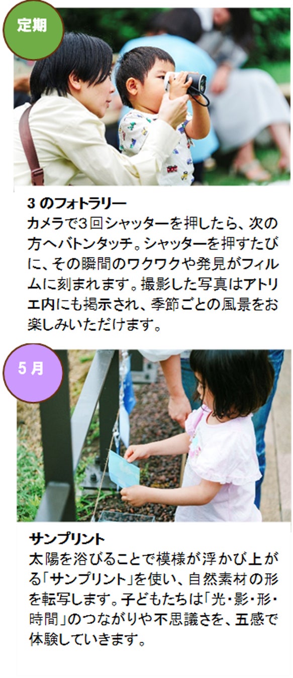 北イタリア発祥の創造性を育む教育として、世界で注目されるレッジョ・エミリア・アプローチからインスパイアをうけているこのプログラムでは、「子どもは100をも悠にこえる表現言語(ことば)を持っている」という同アプローチを象徴する詩「100のことば※」の下、子どもが全身で世界を感じ取ることを大切にしています。それぞれの季節ごとに、麻布台ヒルズの豊かな自然を存分に生かしたコンテンツをご用意しています。