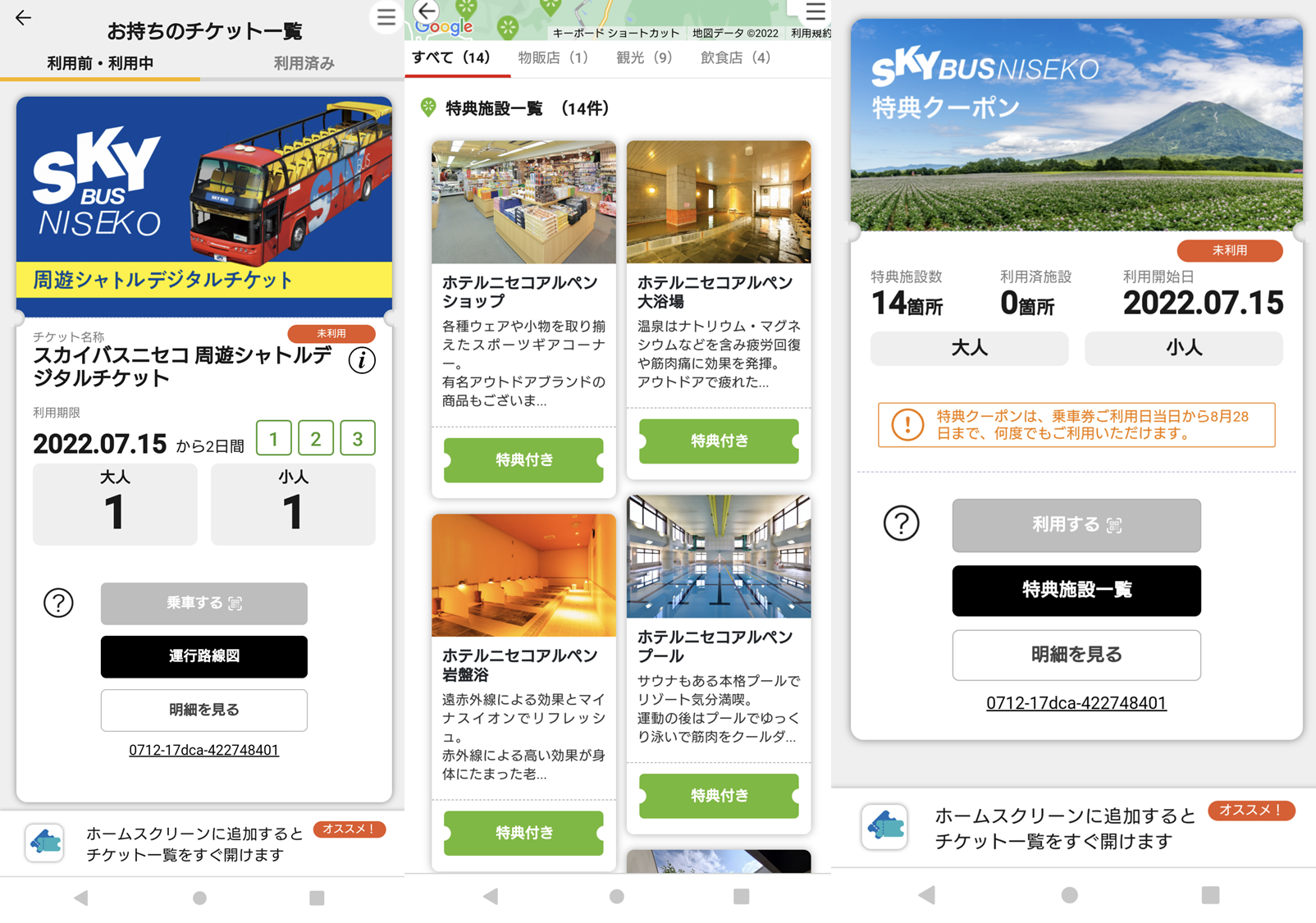 ひらふウェルカムセンターに停車する「スカイバスニセコ」にて TFHD digital 株式会社(東京都渋谷区、代表取締役、植村 仁)は、お客様のスマートフォンを利用した、非接触型デジタル乗車券を提供いたします。 このデジタル乗車券は、株式会社アクアビットスパイラルズの「スマートプレート※」を活用し、お客様がスマートフォンを各バス停、チケット販売センター、ホテル内等に設置された NFC チップや QR コードを利用することで、簡単に購入が可能です。 また、デジタルチケット購入者にはニセコエリア内にある協力店舗のお得なクーポンも提供します。ホテルニセコアルペンでは、東急不動産ホールディングスグループ企業内での連携を取りながら、デジタルの活用を通じて、お客様の利便性向上へ寄与してまいります。