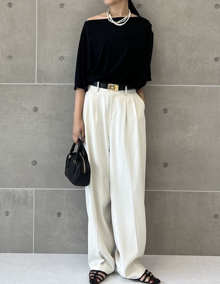 シンプルながら、着かた次第で2WAYのスタイルを楽しめるのが魅力のカットソー。