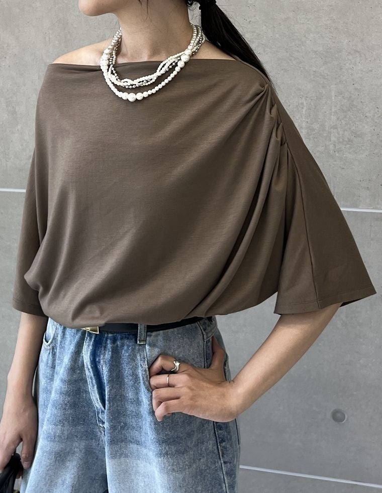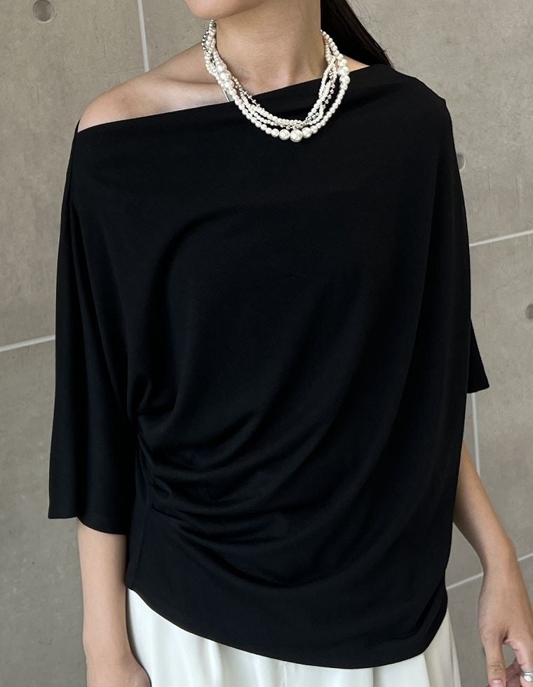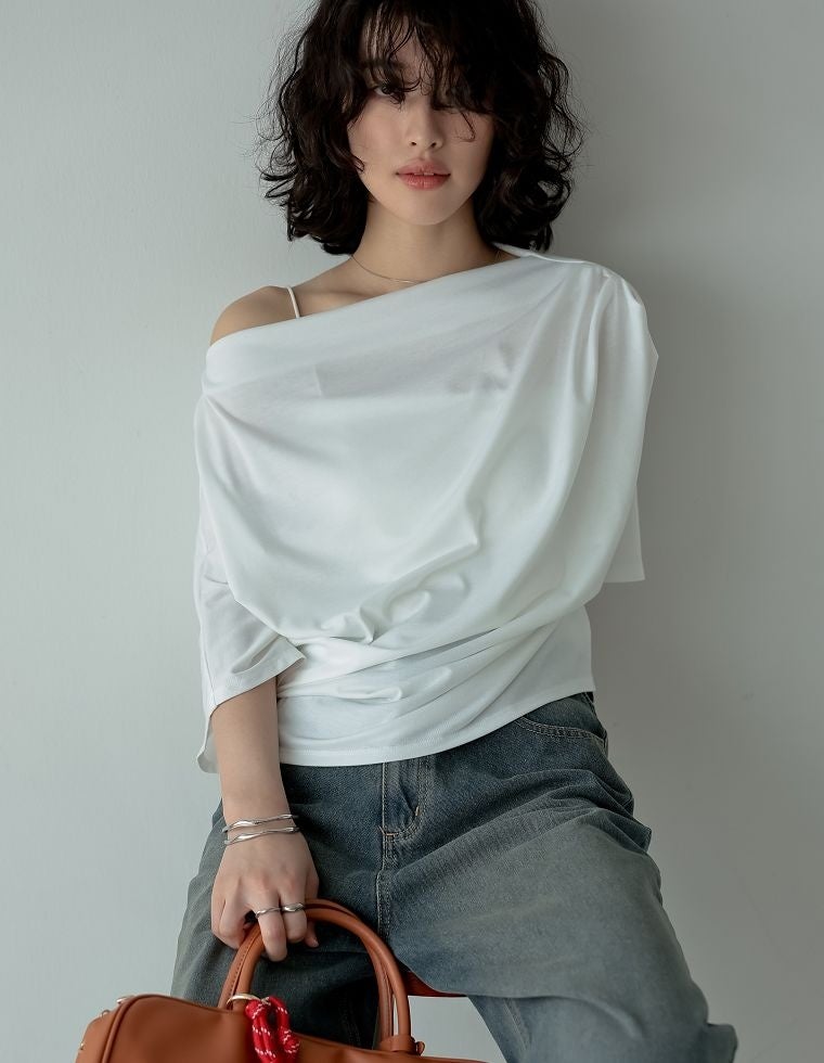 【Re:EDIT(リエディ)】から、30代・40代女性に向けた、2WAYで、自分らしい着こなしを楽しむアシンメトリーデザインのカットドレープトップスが、8/10(土)12:00~新登場!