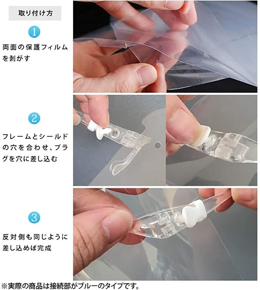 アクリルシールドとフレームを組み立ててからご使用ください。クリアーのアクリルシールドは両面ともに保護フィルムが貼られていますので、剥がしてからご使用ください。