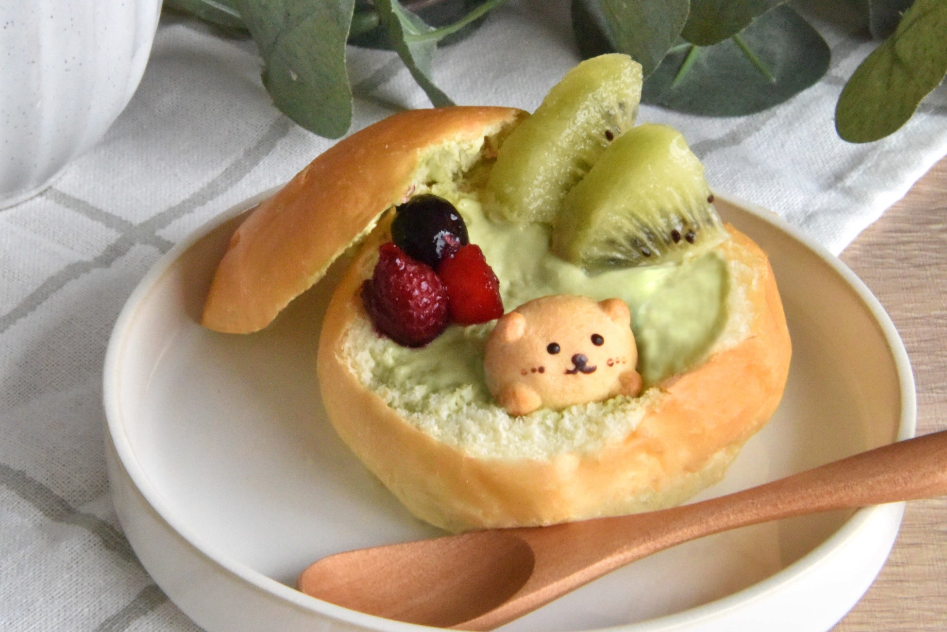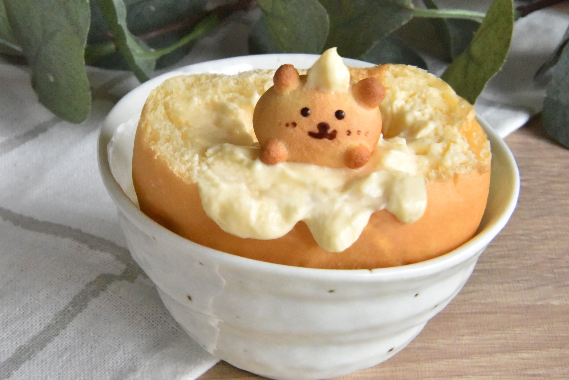 くりーむパンでくつろいだり、潜り込むくまさんと映える癒しのスイーツタイムをお楽しみください。