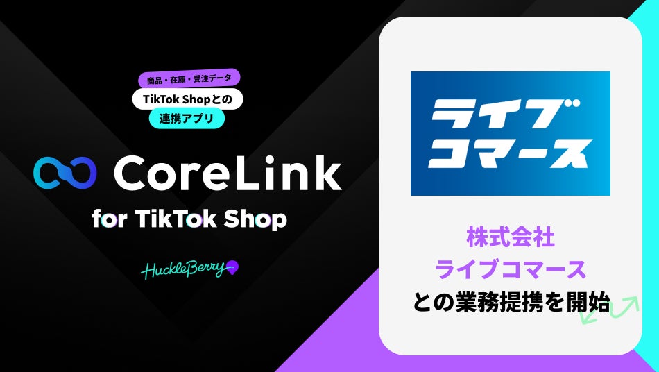 株式会社ハックルベリー(東京都世田谷区、代表取締役社長:安藤 祐輔、以下「ハックルベリー」)が提供する、TikTok Shop連携専用コネクタ「CoreLink for TikTok Shop」は、TikTok Shop事業を展開する株式会社ライブコマース(代表取締役:森 勇気)と業務提携を開始いたしました。これにより、より幅広い事業者に向けて、簡単かつ効率的なTikTok Shopへの出店支援を届けていきます。