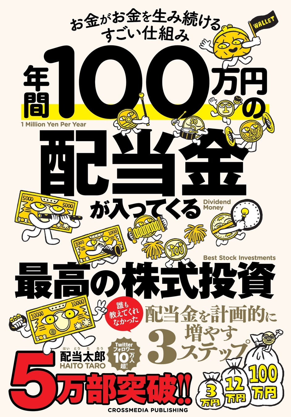 現在、Twitterのフォロワーが10.7万人を数え、しかも日々、その数を増やしている著者の配当太郎氏。この本では、配当株投資の持ち味とノウハウについて、同氏がしっかり深掘りしてお伝えします。特に、年間100万円の配当金を手に入れるための「3つのステップ」を徹底解説していきます。