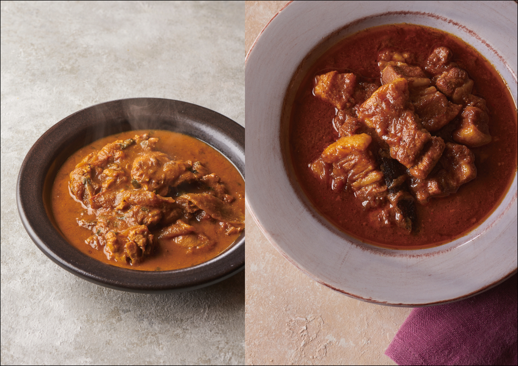 スパイスカレーの代表チキンカレーから人気のバターチキンカレー、少し上級者向きのポークビンダルーまで。
