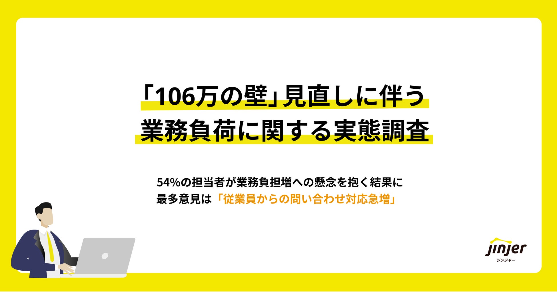 クラウド型人事労務システム「ジンジャー」を提供しているjinjer株式会社(本社:東京都新宿区 代表取締役社長:桑内 孝志 以下、jinjer)は、企業の経営層・人事担当者の計360名を対象に「年収の壁見直しに伴う業務負荷」に関する調査を実施しました。