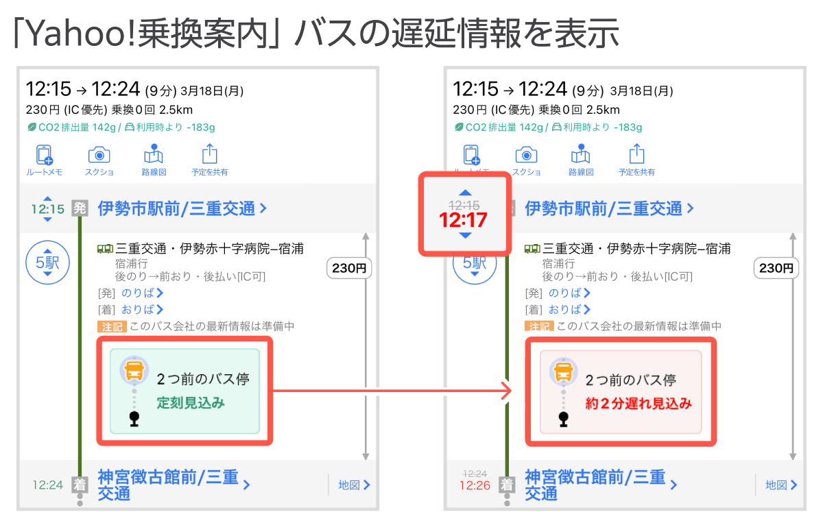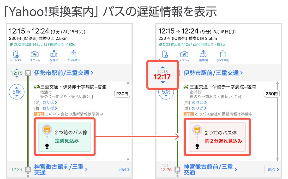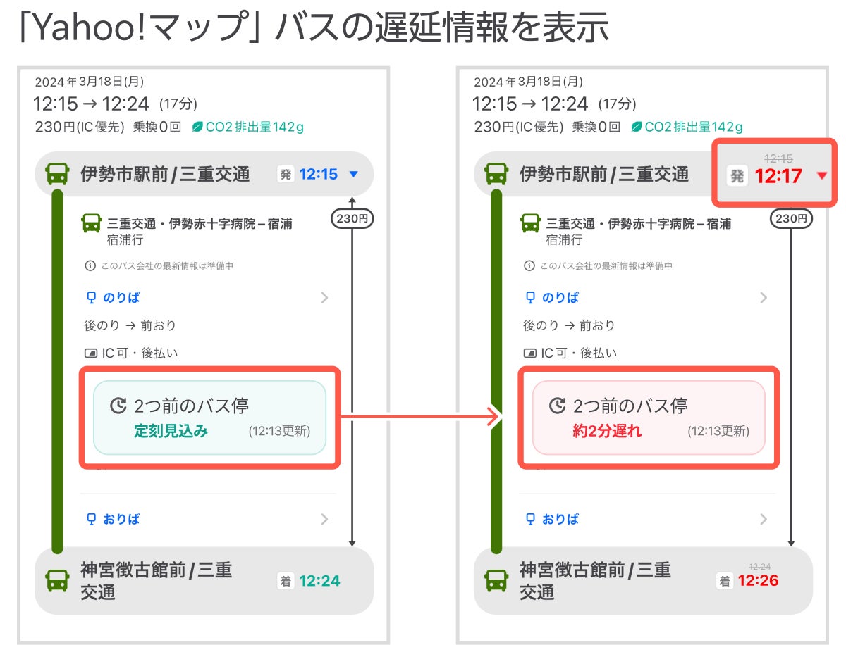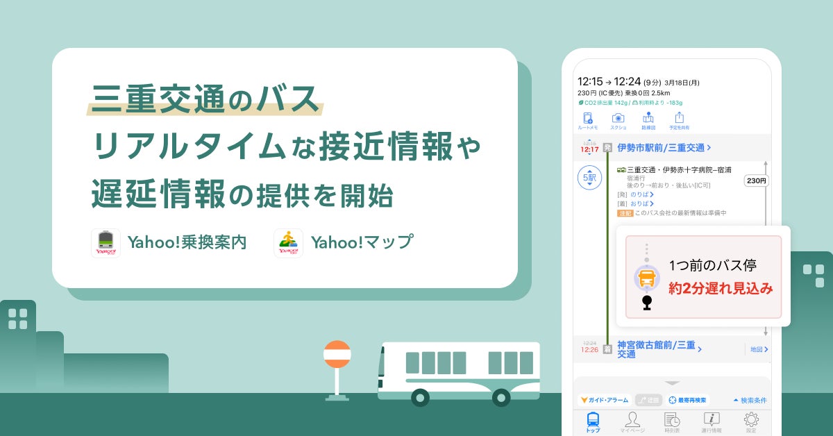 Yahoo!乗換案内とYahoo!マップ、三重県全域で路線バスを運行する「三重交通」でリアルタイムな接近情報や遅延情報の提供を開始