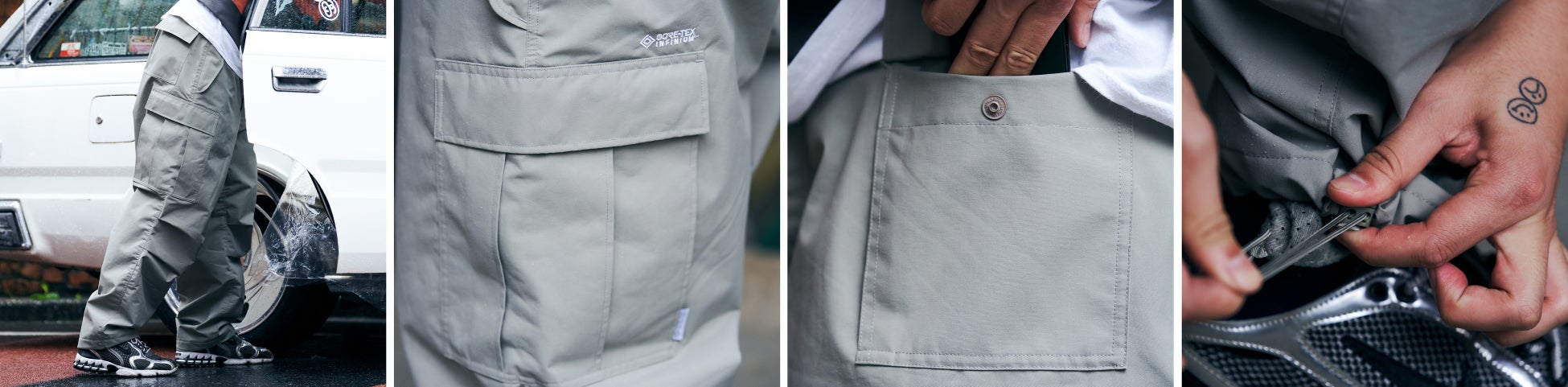 ●後サイドポケットのGORE‐TEXロゴが都会的なルックスと程よいギア感を演出