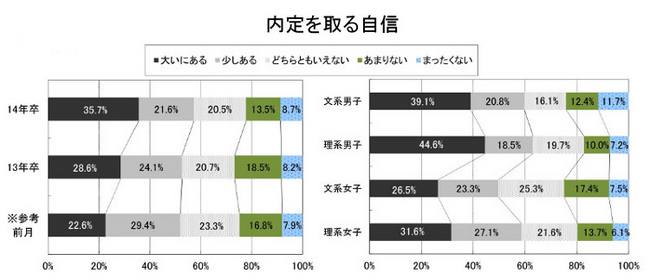 ■約6割の学生が内定を取る自信がある一方、約7割の学生が就職活動は「厳しい」と実感
