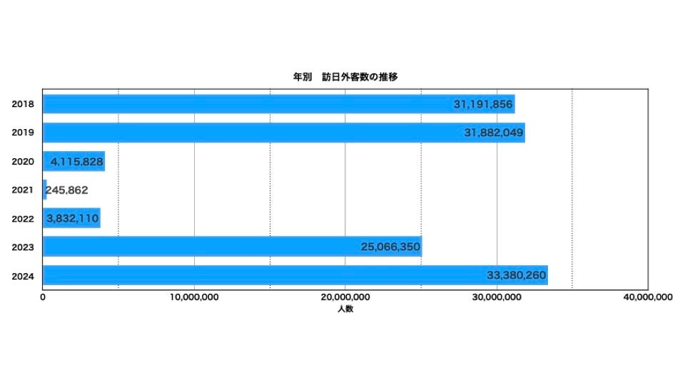 2024年には約3,686万人と過去最高記録を達成、2025年はこの記録を更新する可能性があると推測されており、さらなる観光市場の拡大が見込まれています。