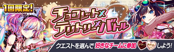 2チームに分かれてポイントを競うバトルイベントや、バレンタイン限定のランキングクエストなどなど、バレンタインはクラッシュフィーバーで遊び尽くそう!!