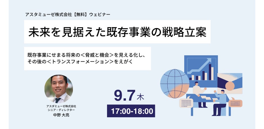 無料ウェビナー「未来を見据えた既存事業の戦略立案 ~既存事業にせまる将来の<脅威と機会>を見える化し、その後の<トランスフォーメーション>をえがく~」のアップデート版を9月に開催