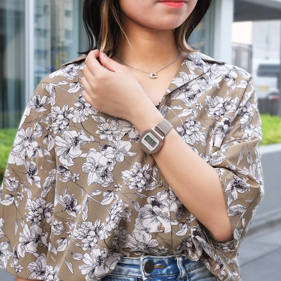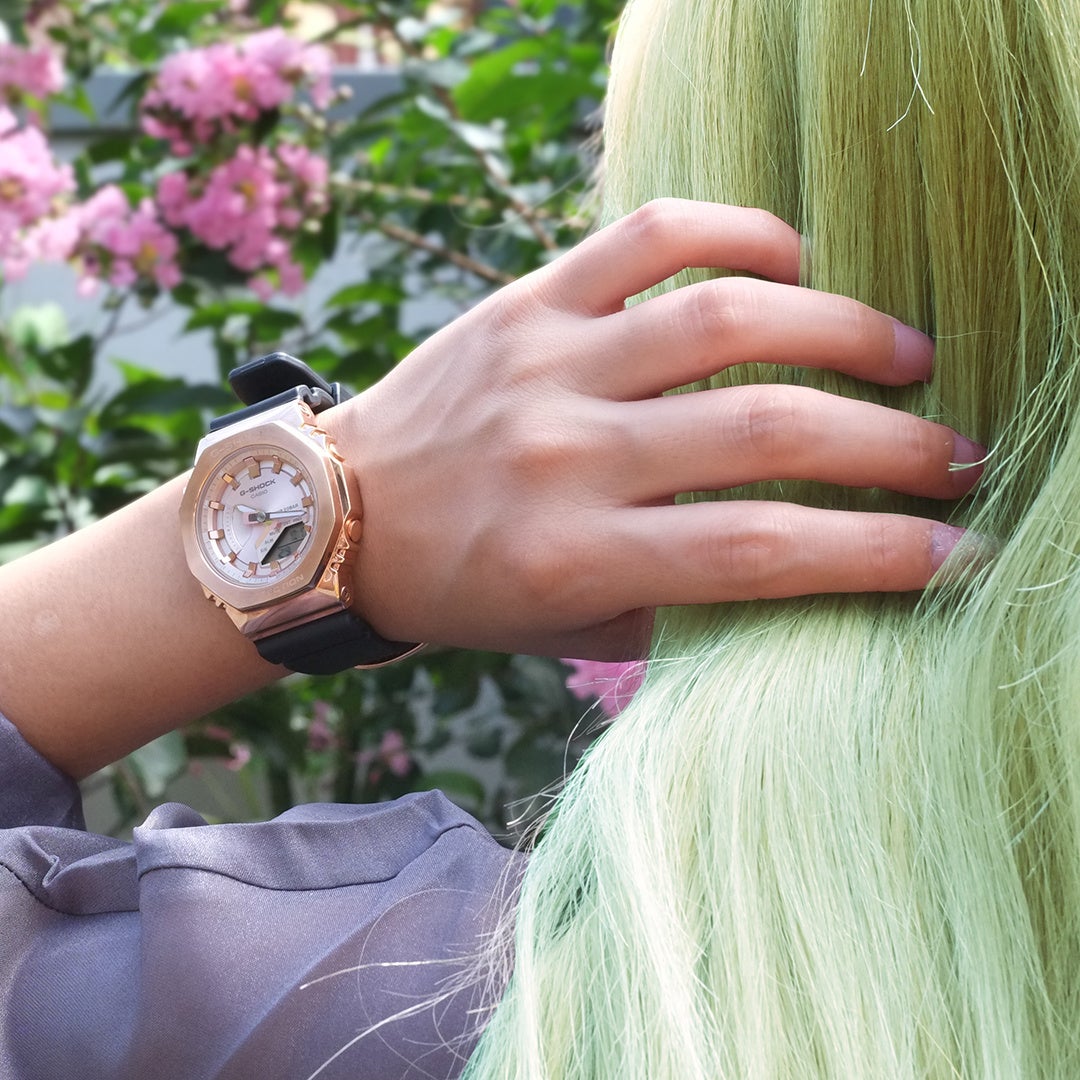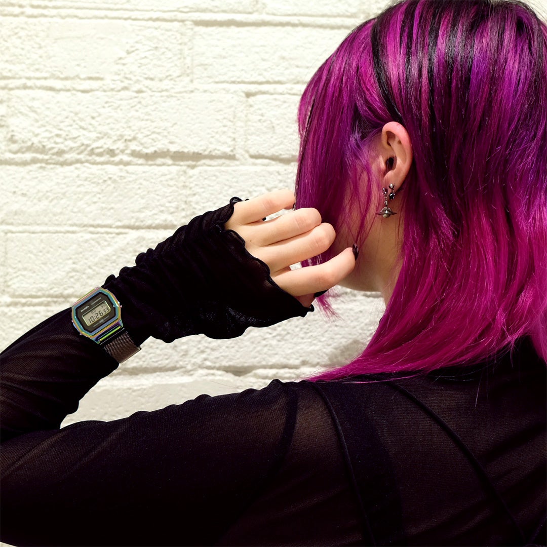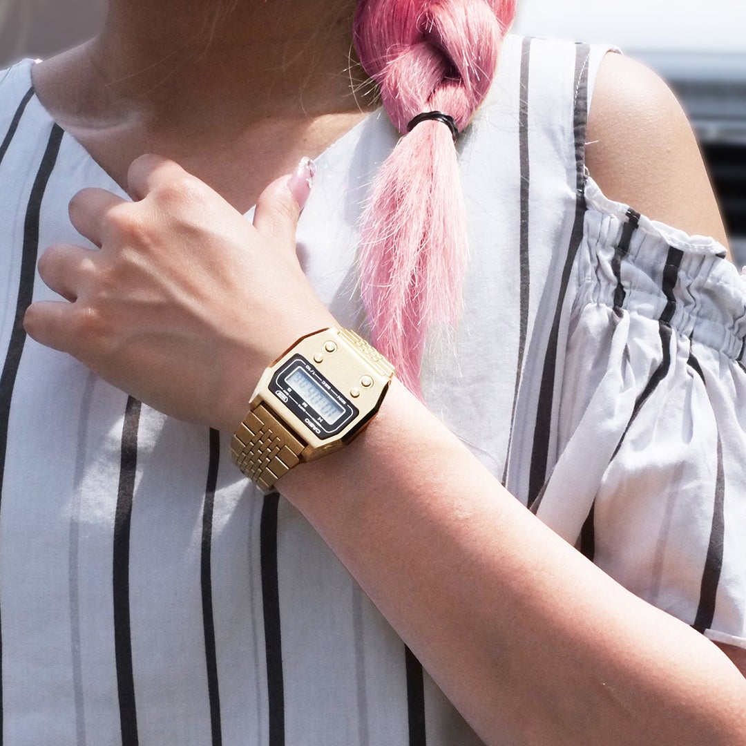 自由なヘアスタイルとカシオはこの夏ベストな組み合わせ。ヘアカラーを変えると気持ちがあがるように、腕時計で気分UP!