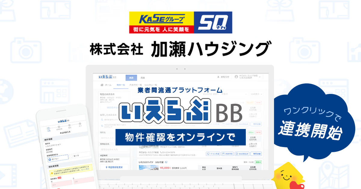 加瀬ハウジングは、不動産の業者間流通プラットフォームである「いえらぶBB」の導入を開始いたしました。このたびの導入により、「いえらぶBB」を利用する全国の仲介会社は、加瀬ハウジングが管理する物件の空室状況をリアルタイムで確認し、オンラインで内見予約・入居申込みできるようになります。