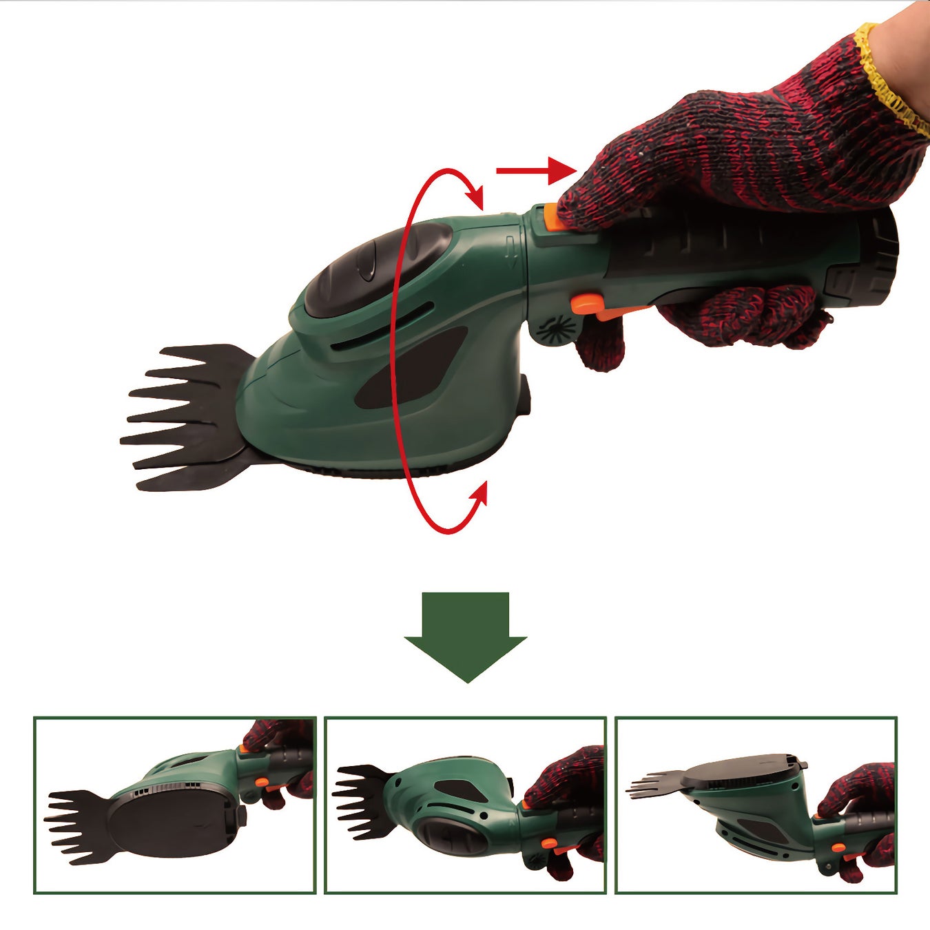 ブレードを回転させることで、芝生と通路の境目などで活用できます。