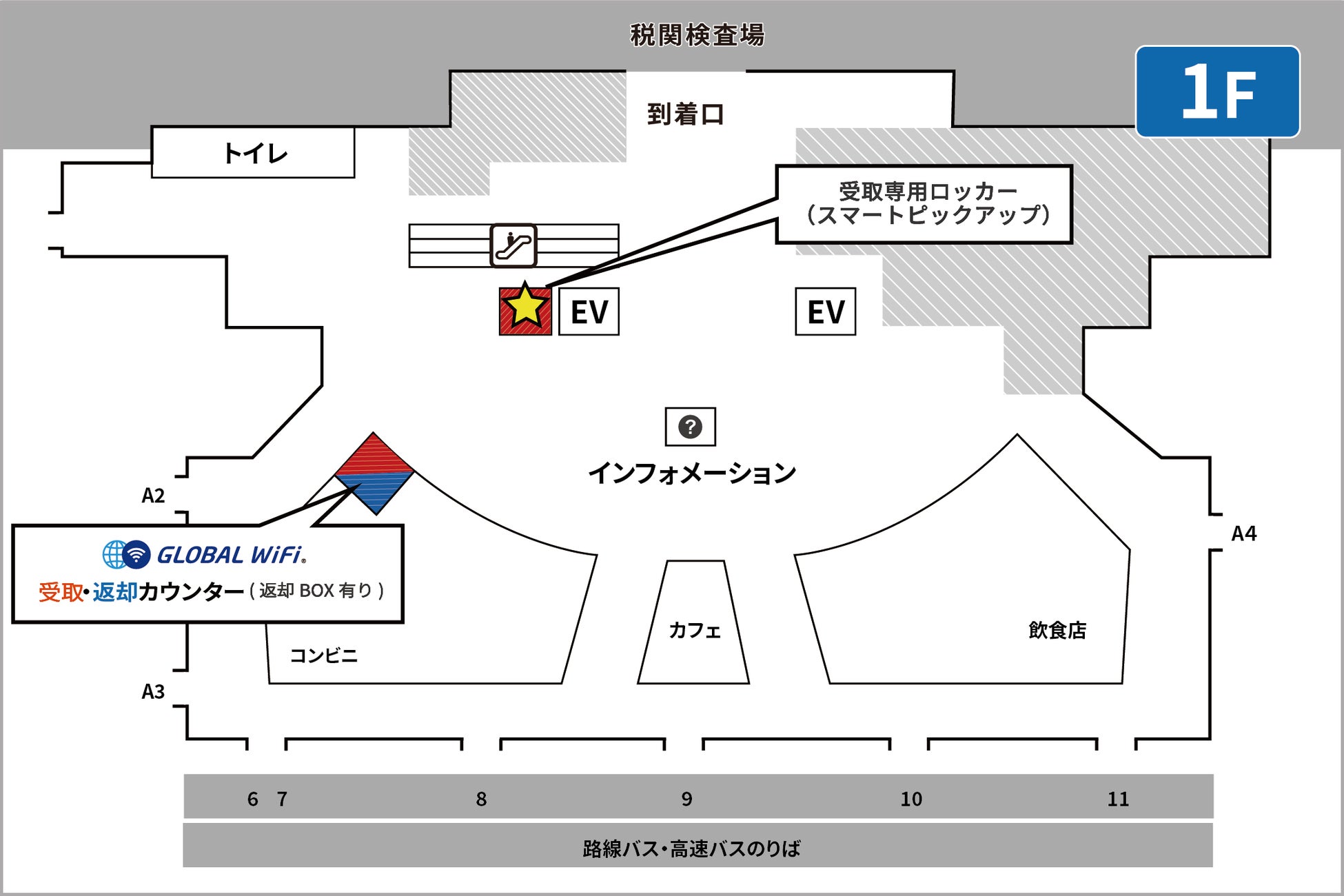 〔*4〕 国際線1階到着ロビー 総合案内横「J WiFi & Mobile」でのご対応となります。