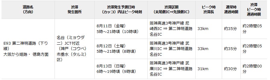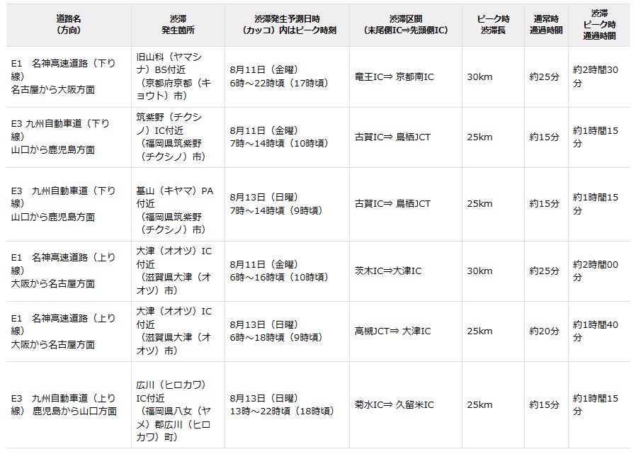 NEXCO西日本管内のお盆期間における高速道路の渋滞予測について